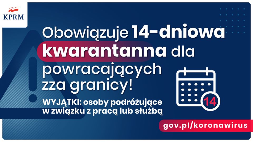 Wciąż także działa obowiązkowa 14-dniowa kwarantanna dla powracających zza granicy.