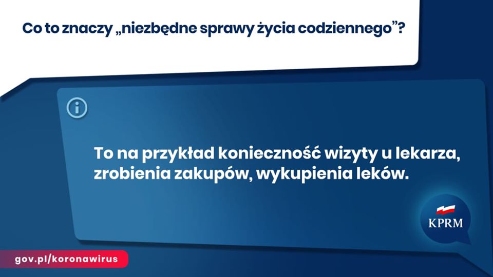 - załatwiania spraw niezbędnych do życia codziennego. Będziesz mógł się przemieszczać, aby zrobić niezbędne zakupy, wykupić lekarstwa, udać się do lekarza, opiekować się bliskimi, wyprowadzić psa.