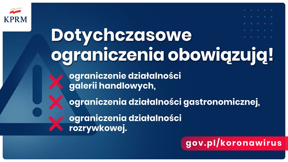 Mimo wprowadzanych zmian, w mocy pozostają wszystkie dotychczasowe zakazy, czyli ograniczenie w działalności galerii handlowych, działalności gastronomicznej i rozrywkowej.