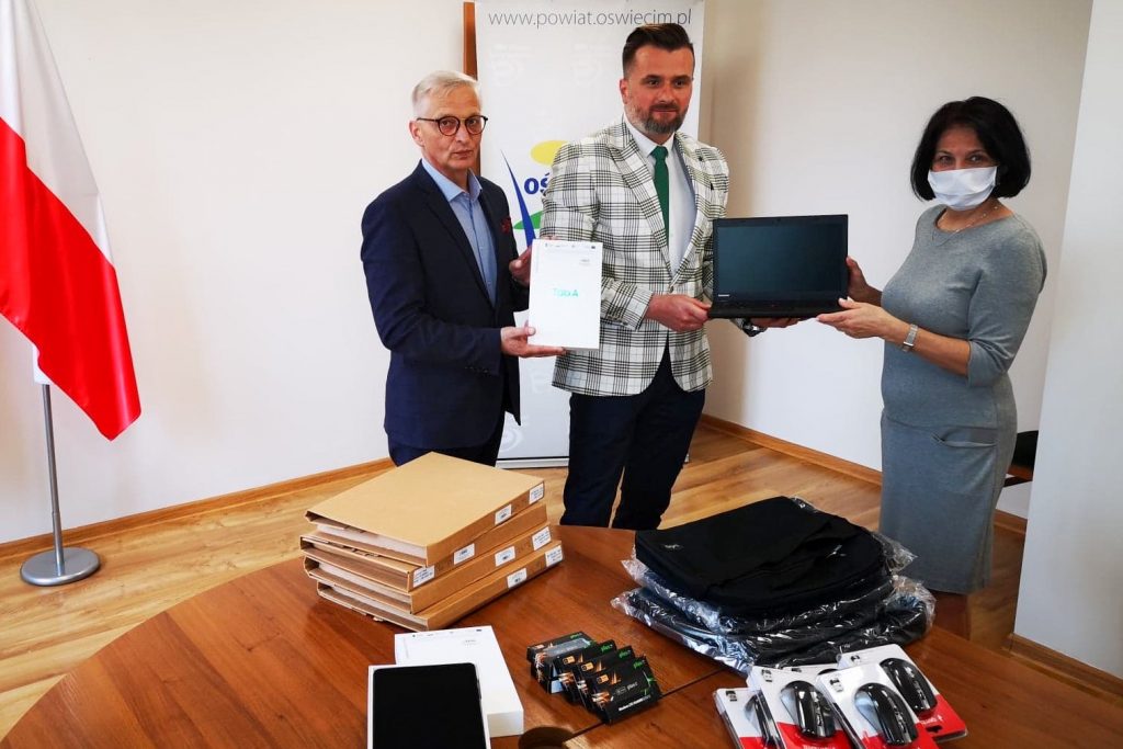 “Sprzęt o łącznej wartości blisko 100 tys. zł został zakupiony dzięki grantowi z Programu Operacyjnego Polska Cyfrowa na lata 2014-2020. Decyzją dyrektorów poszczególnych placówek sprzęt będzie mógł zostać użyczony uczniom wykluczonym cyfrowo do realizacji zadań zdalnej nauki” – podaje strona Powiatu.