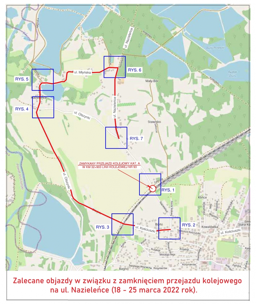 Na poniższej mapie wskazano objazdy, wyznaczone zgodnie ze zmienioną czasową organizacją ruchu: