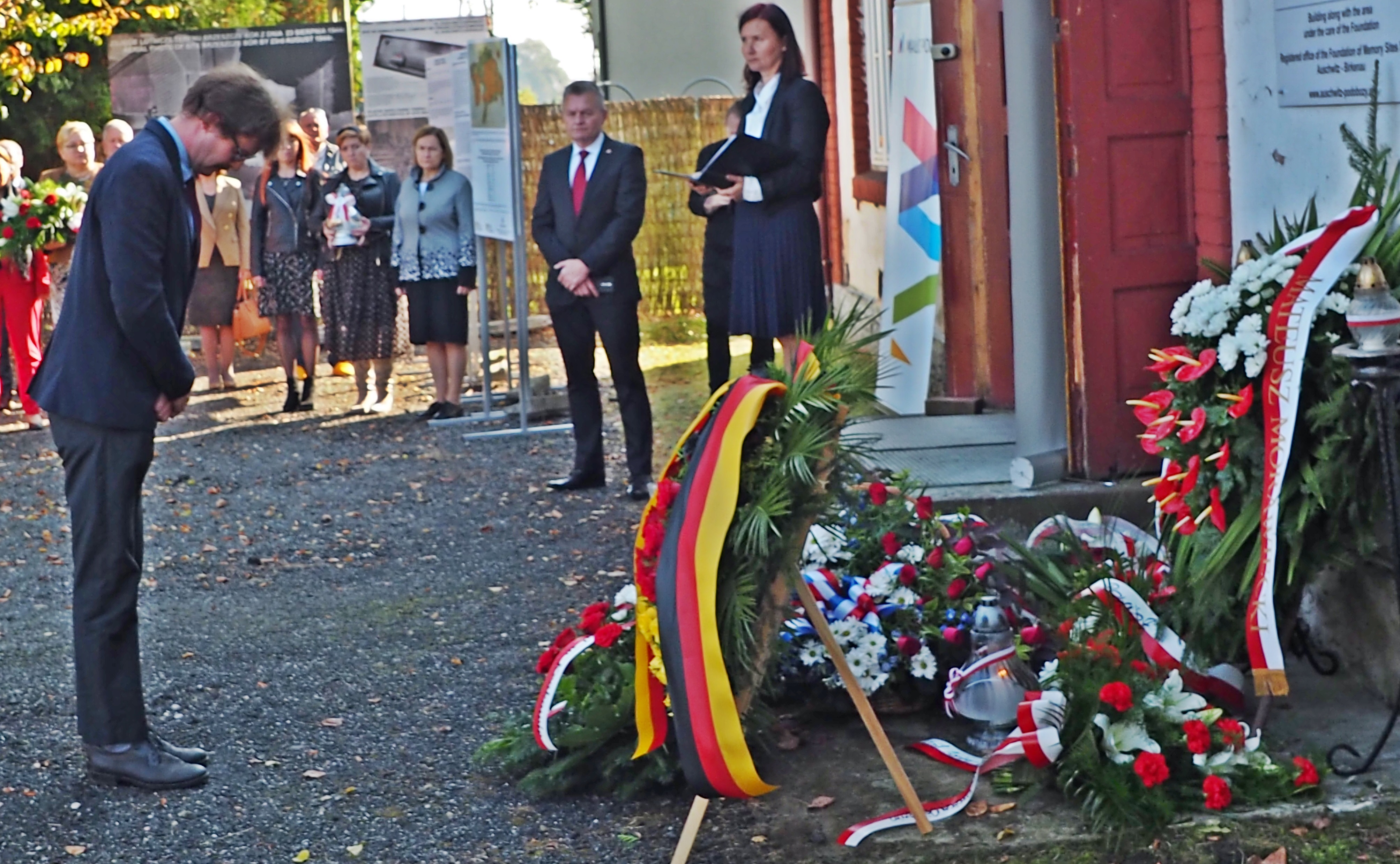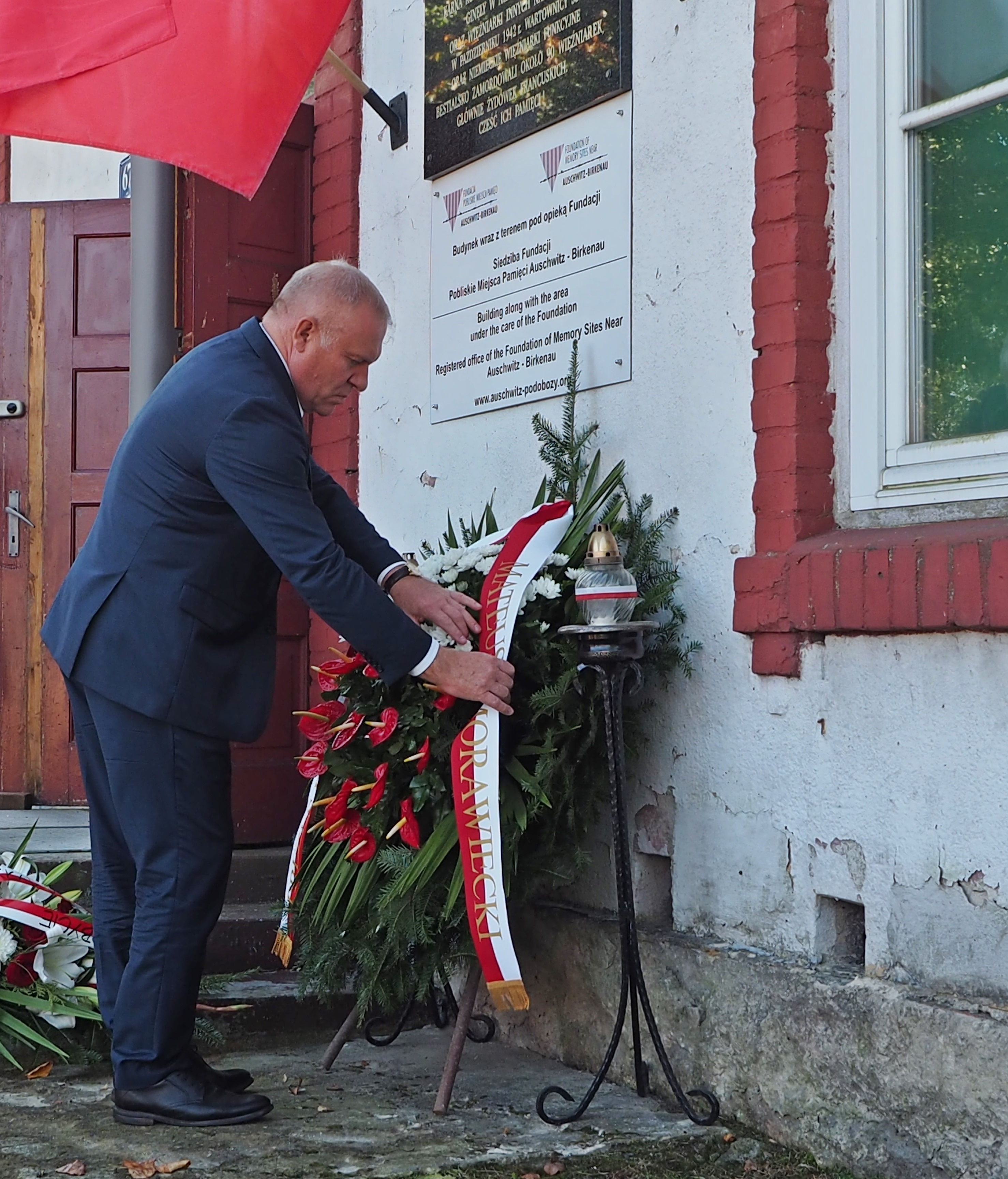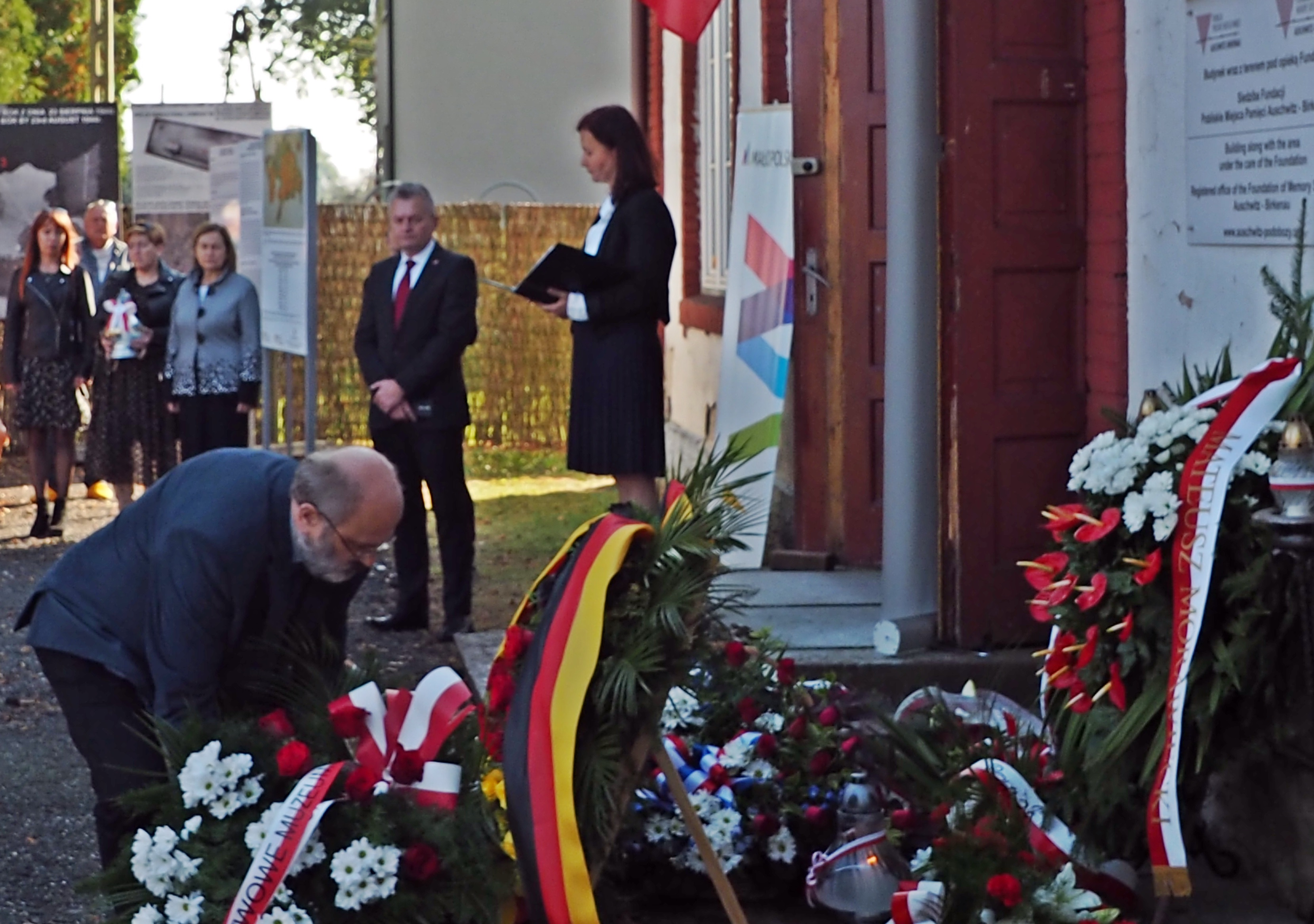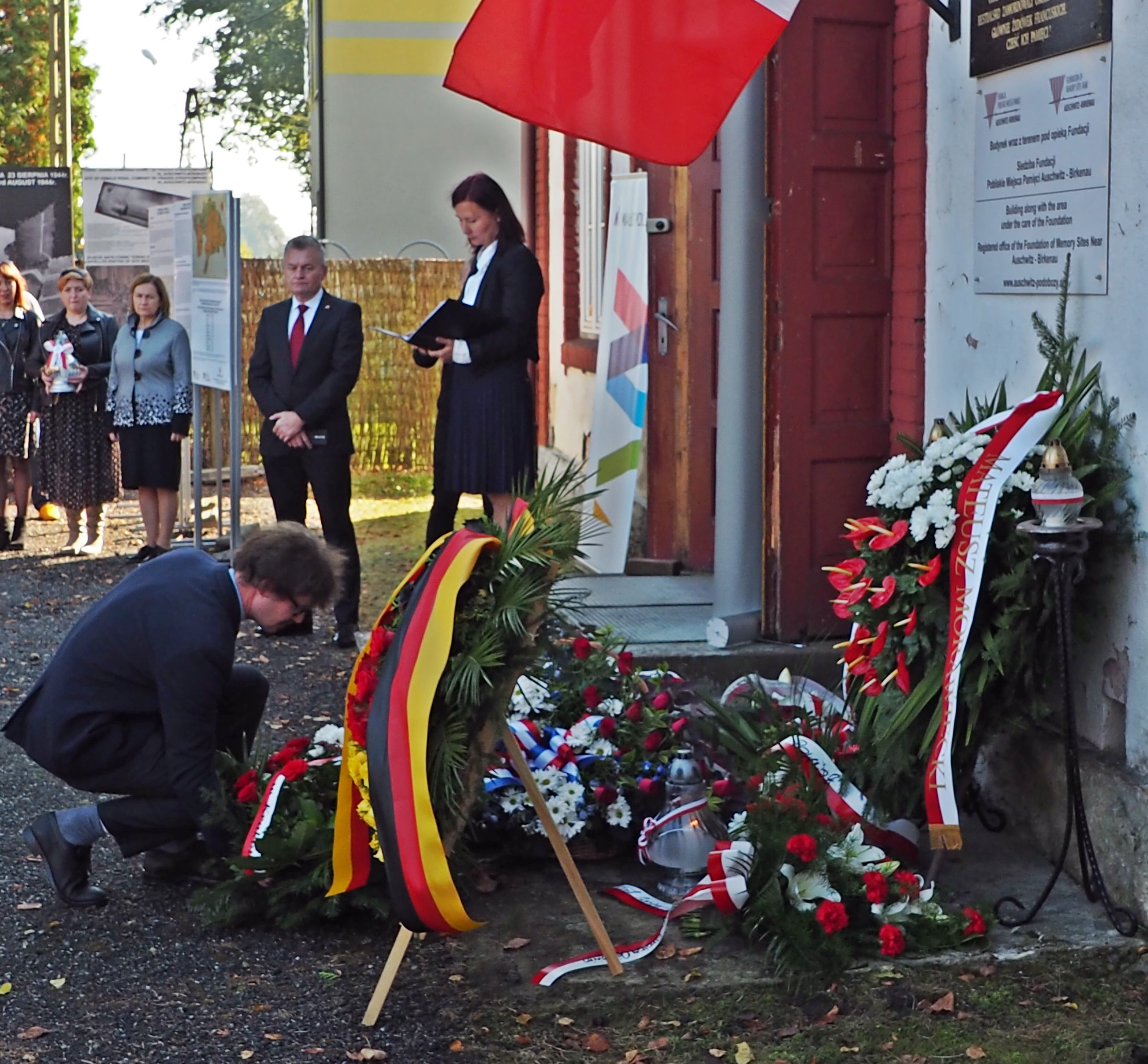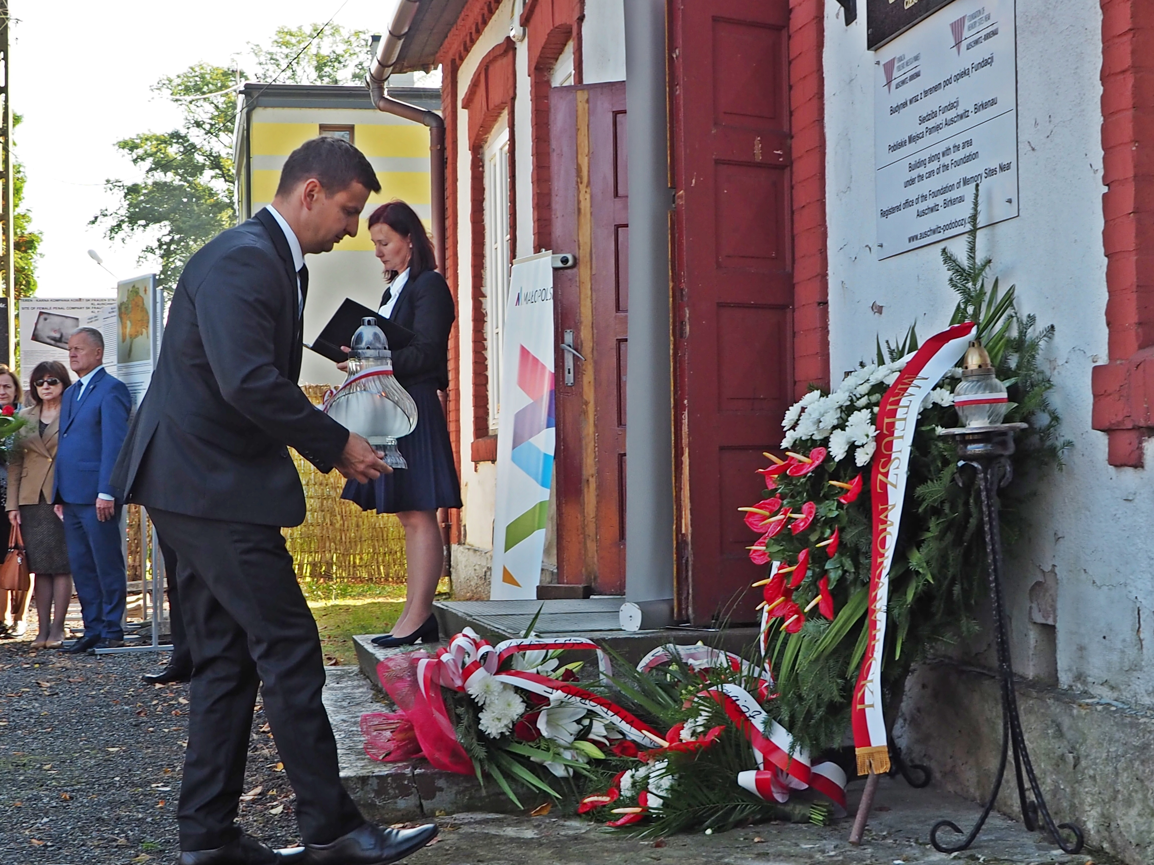 W imieniu Prezesa Rady Ministrów Pana Mateusza Morawieckiego wieniec złożył Wicewojewoda Małopolski Pan Ryszard Pagacz, Pani Izabela Miłkowska Dyrektor biura poselskiego Posła na Sejm RP Krzysztofa Kozika, Zastępca Burmistrza Brzeszcz Pan Łukasz Kobielusz, Pani Teresa Jankowska Członek Zarządu Powiatu w Oświęcimiu, Wójt Gminy Oświęcim Pan Mirosław Smolarek wraz z Zastępcą Panią Haliną Musiał, Konsul Generalny Francji Pani Anne Schmidt-Riou, Konsul Generalny Niemiec Pani Ursula Mayer, przedstawiciel Instytutu Pamięci Narodowej oddział Kraków Pan Jakub Ryba, Przewodniczący Rady Miejskiej w Brzeszczach Pan Zbigniew Kolasa wraz z radnymi Panią Izabelą Miłkowska, Panem Jackiem Wawro, Panem Aleksandrem Zontek, Panem Markiem Gancarczykiem, Przewodnicząca Rady Gminy Oświęcim Pani Bernardyna Bryzek wraz z radnymi Panem Jackiem Mydlarzem, Panem Zbigniewem Krzemień, delegacja z Państwowego Muzeum Auschwitz-Birkenau w osobach Pani Teresy WontorCichy i Pana dr. Jacka Lachendro, delegacja Stowarzyszenia Romów w Polsce – Pan Władysław