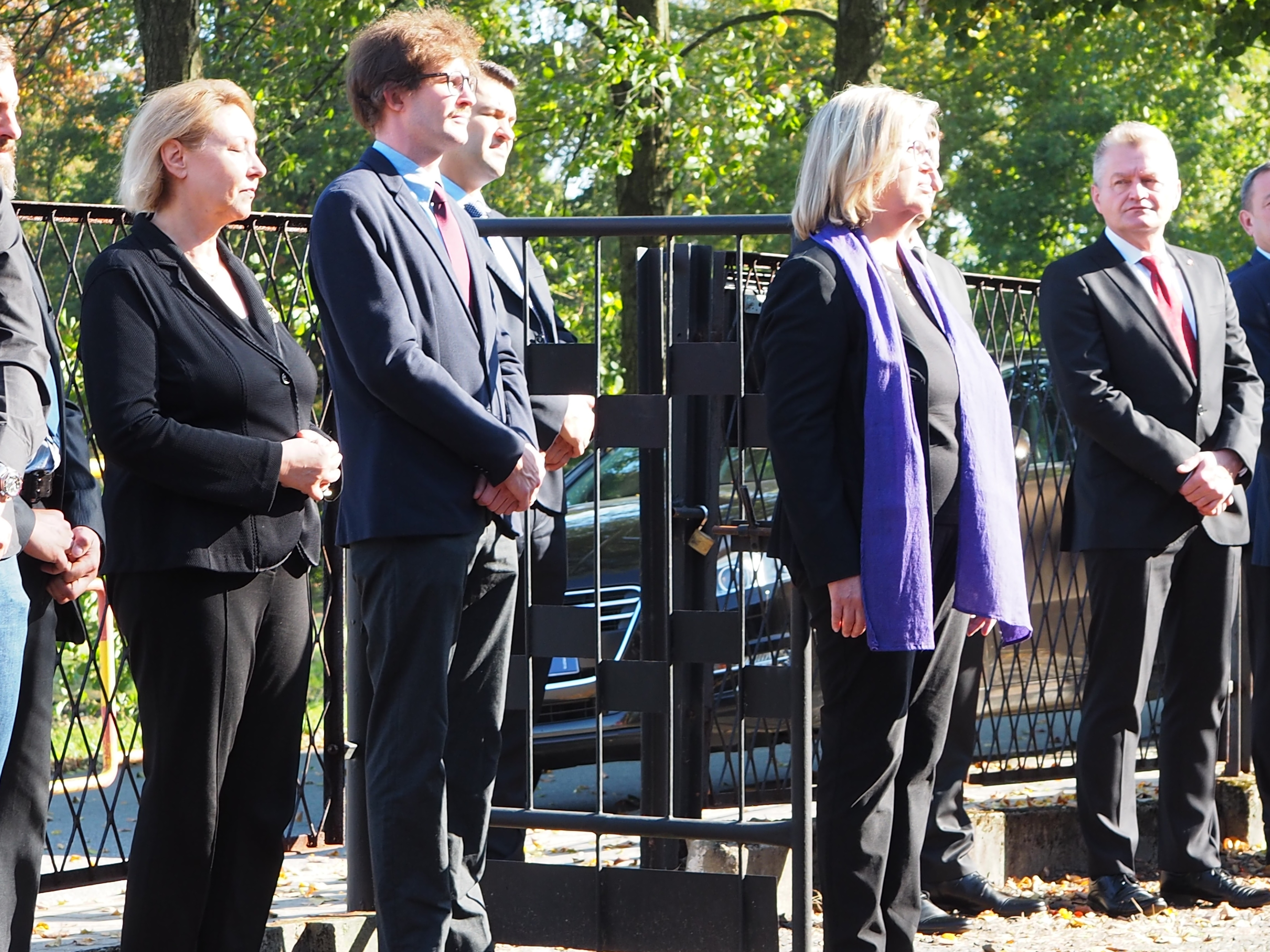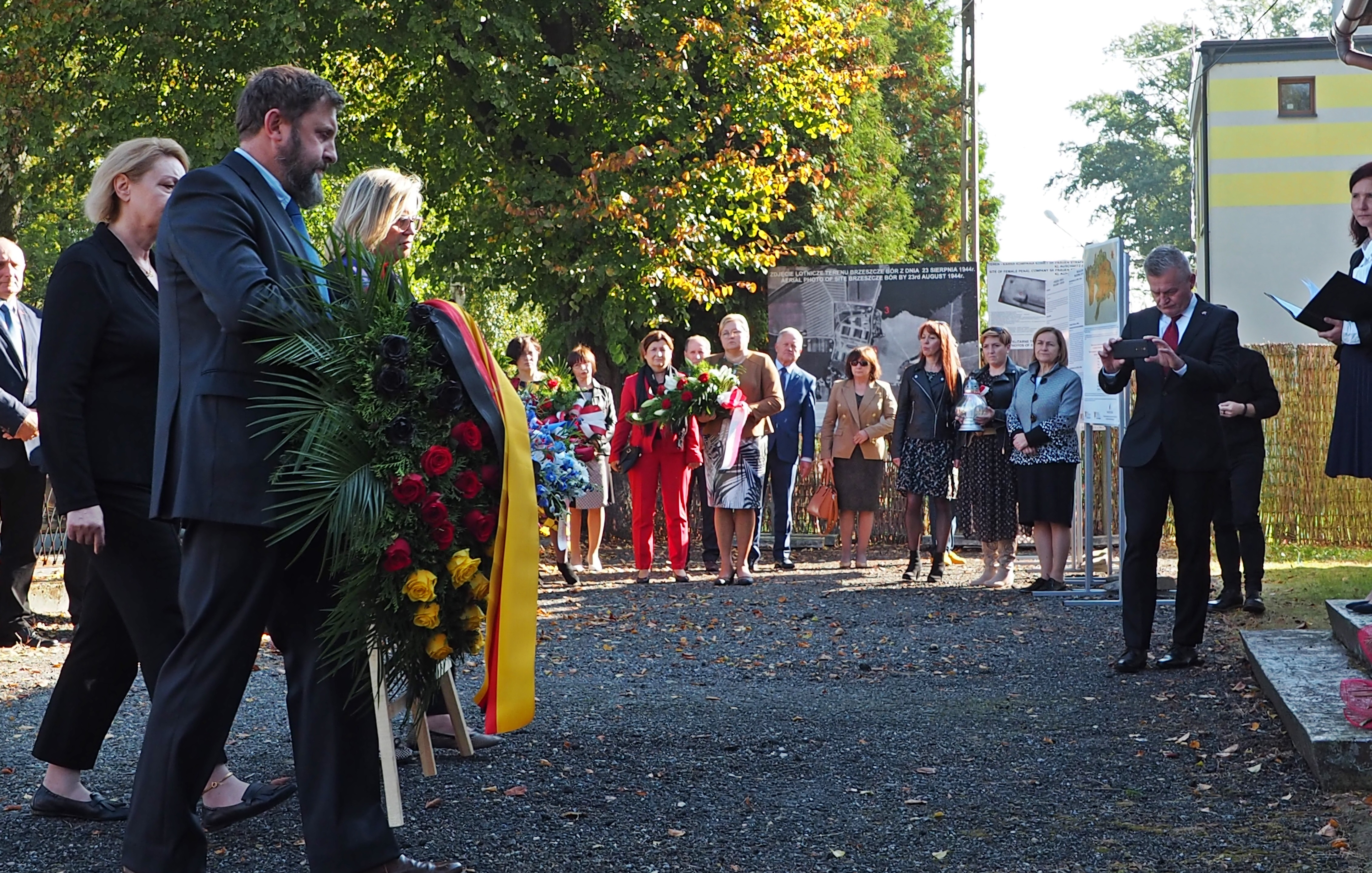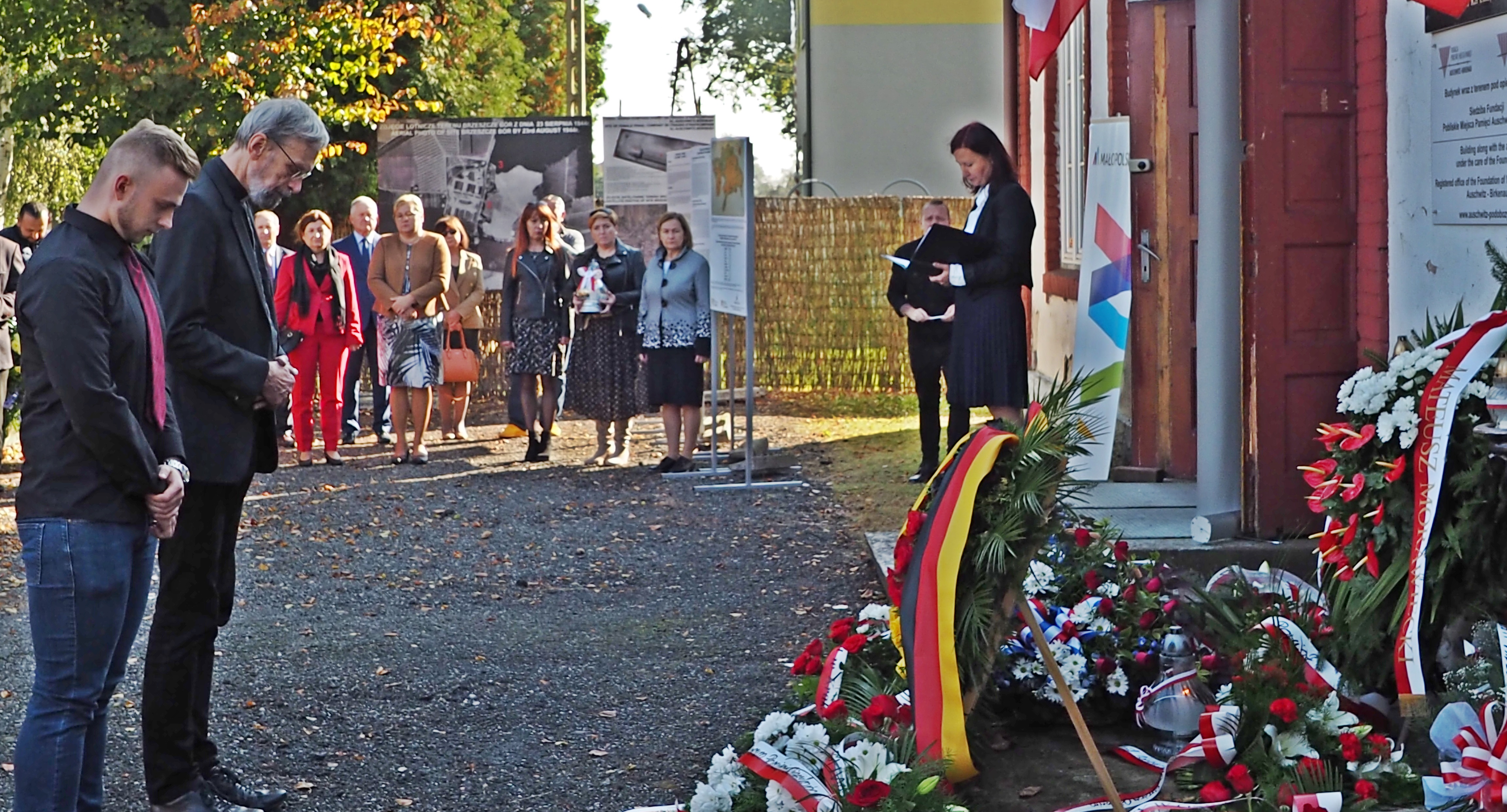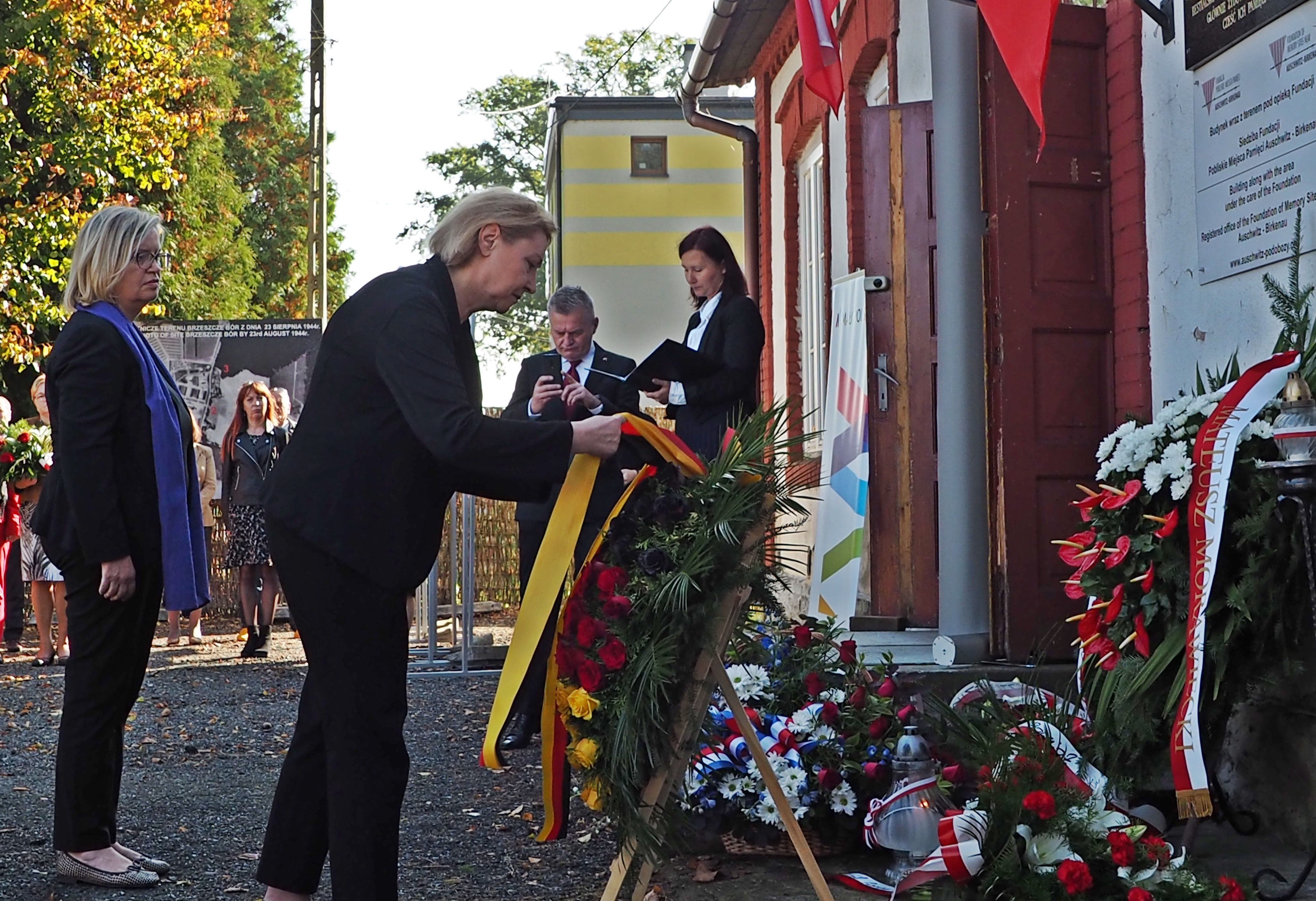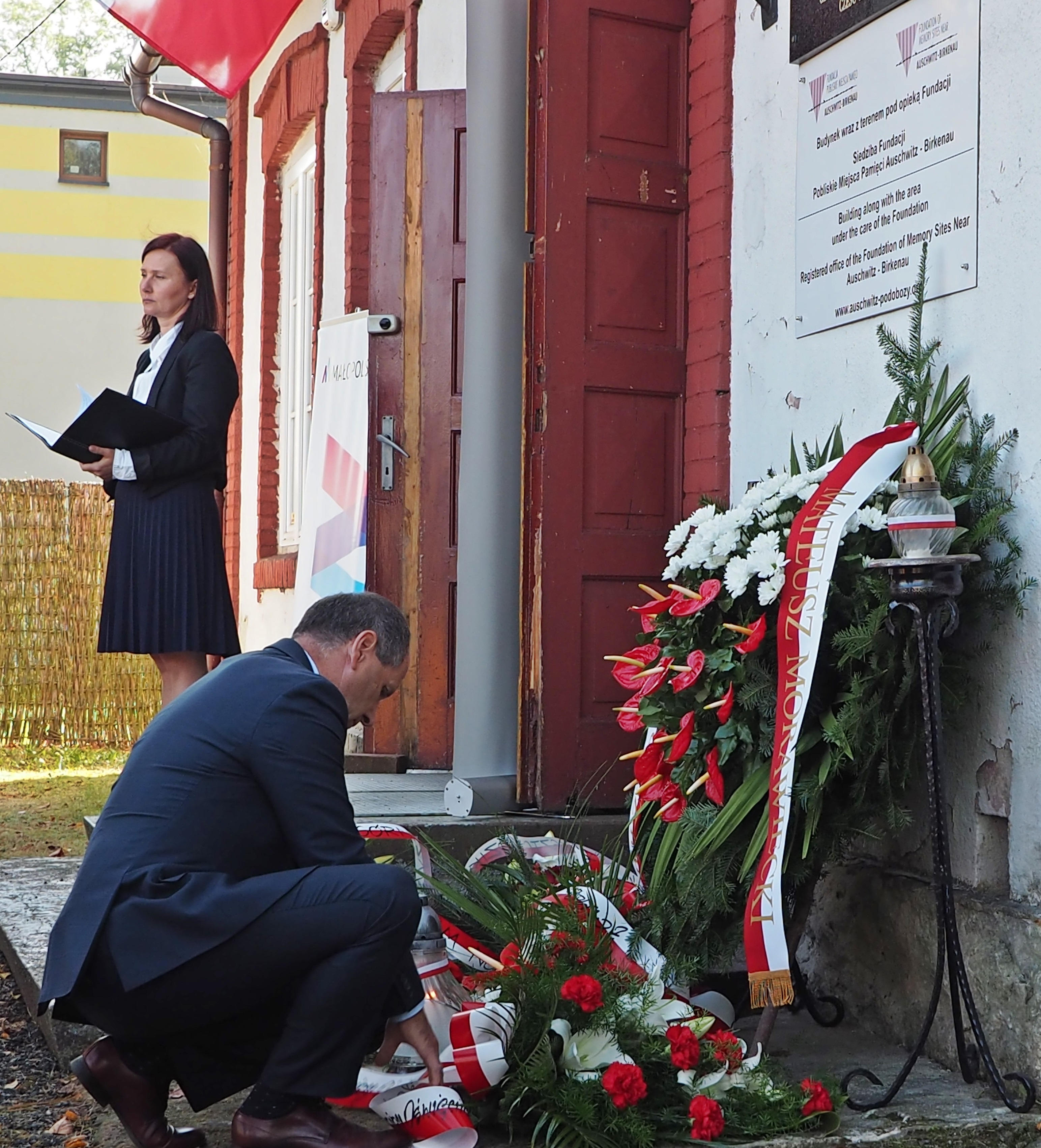 W imieniu Prezesa Rady Ministrów Pana Mateusza Morawieckiego wieniec złożył Wicewojewoda Małopolski Pan Ryszard Pagacz, Pani Izabela Miłkowska Dyrektor biura poselskiego Posła na Sejm RP Krzysztofa Kozika, Zastępca Burmistrza Brzeszcz Pan Łukasz Kobielusz, Pani Teresa Jankowska Członek Zarządu Powiatu w Oświęcimiu, Wójt Gminy Oświęcim Pan Mirosław Smolarek wraz z Zastępcą Panią Haliną Musiał, Konsul Generalny Francji Pani Anne Schmidt-Riou, Konsul Generalny Niemiec Pani Ursula Mayer, przedstawiciel Instytutu Pamięci Narodowej oddział Kraków Pan Jakub Ryba, Przewodniczący Rady Miejskiej w Brzeszczach Pan Zbigniew Kolasa wraz z radnymi Panią Izabelą Miłkowska, Panem Jackiem Wawro, Panem Aleksandrem Zontek, Panem Markiem Gancarczykiem, Przewodnicząca Rady Gminy Oświęcim Pani Bernardyna Bryzek wraz z radnymi Panem Jackiem Mydlarzem, Panem Zbigniewem Krzemień, delegacja z Państwowego Muzeum Auschwitz-Birkenau w osobach Pani Teresy WontorCichy i Pana dr. Jacka Lachendro, delegacja Stowarzyszenia Romów w Polsce – Pan Władysław