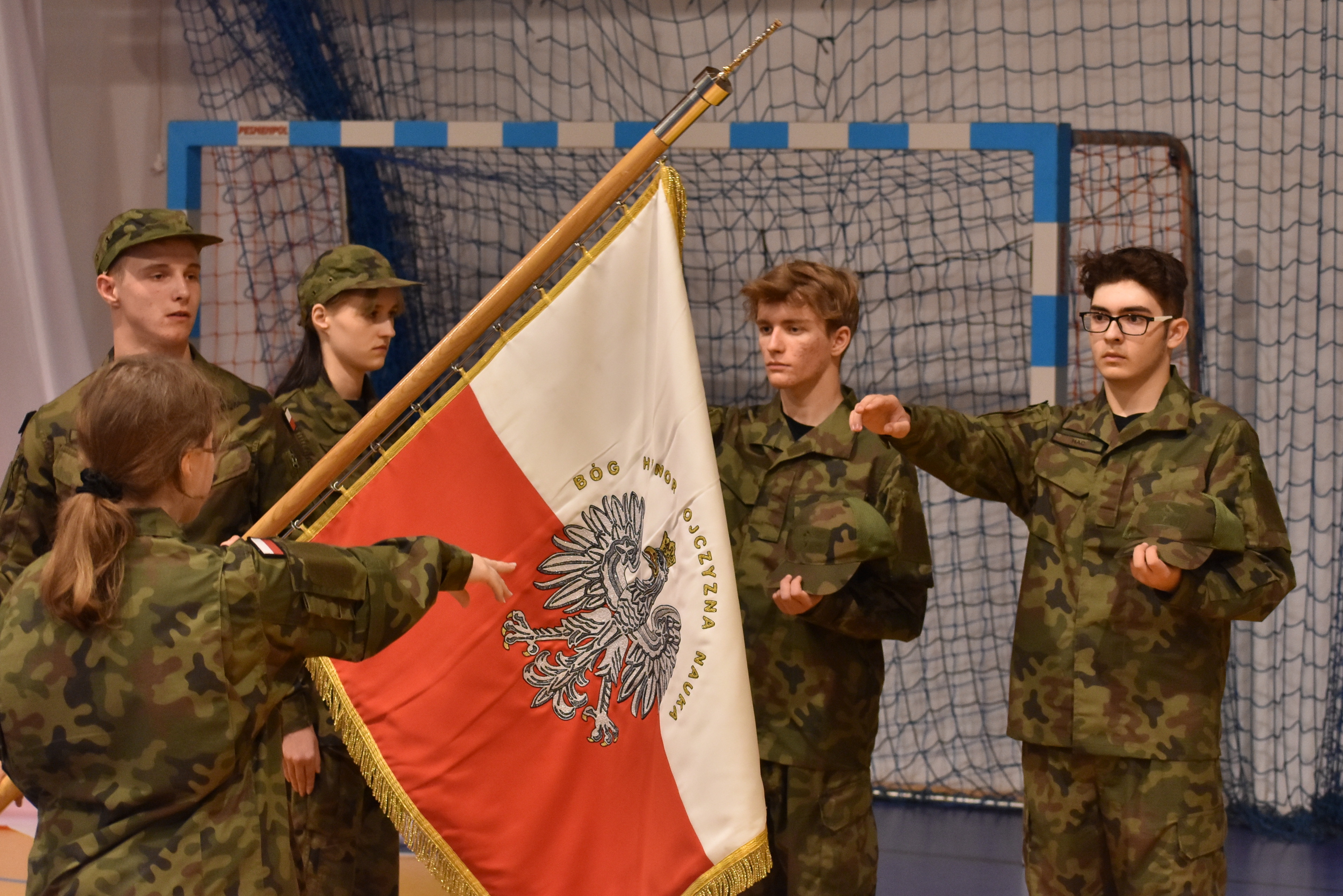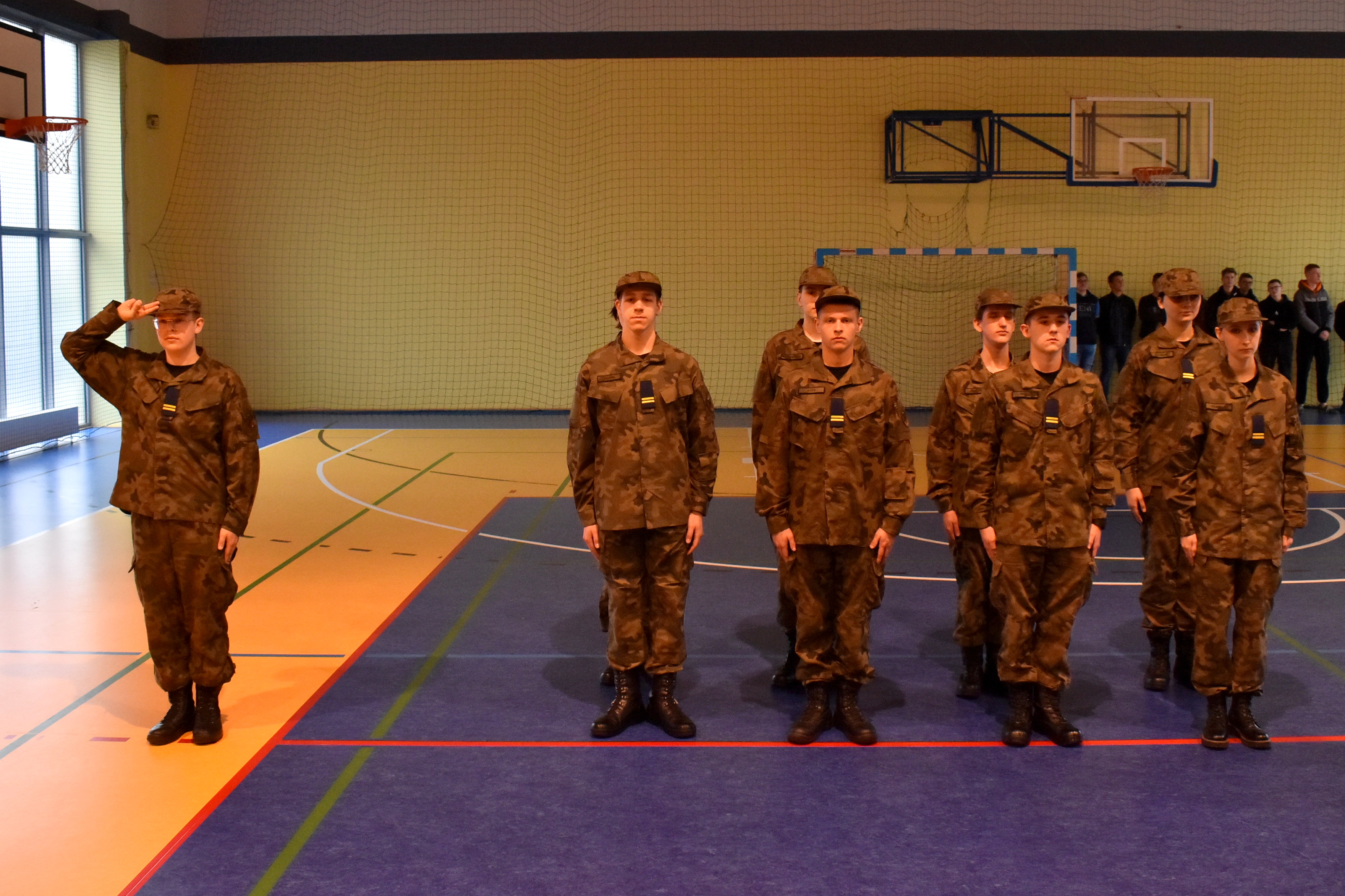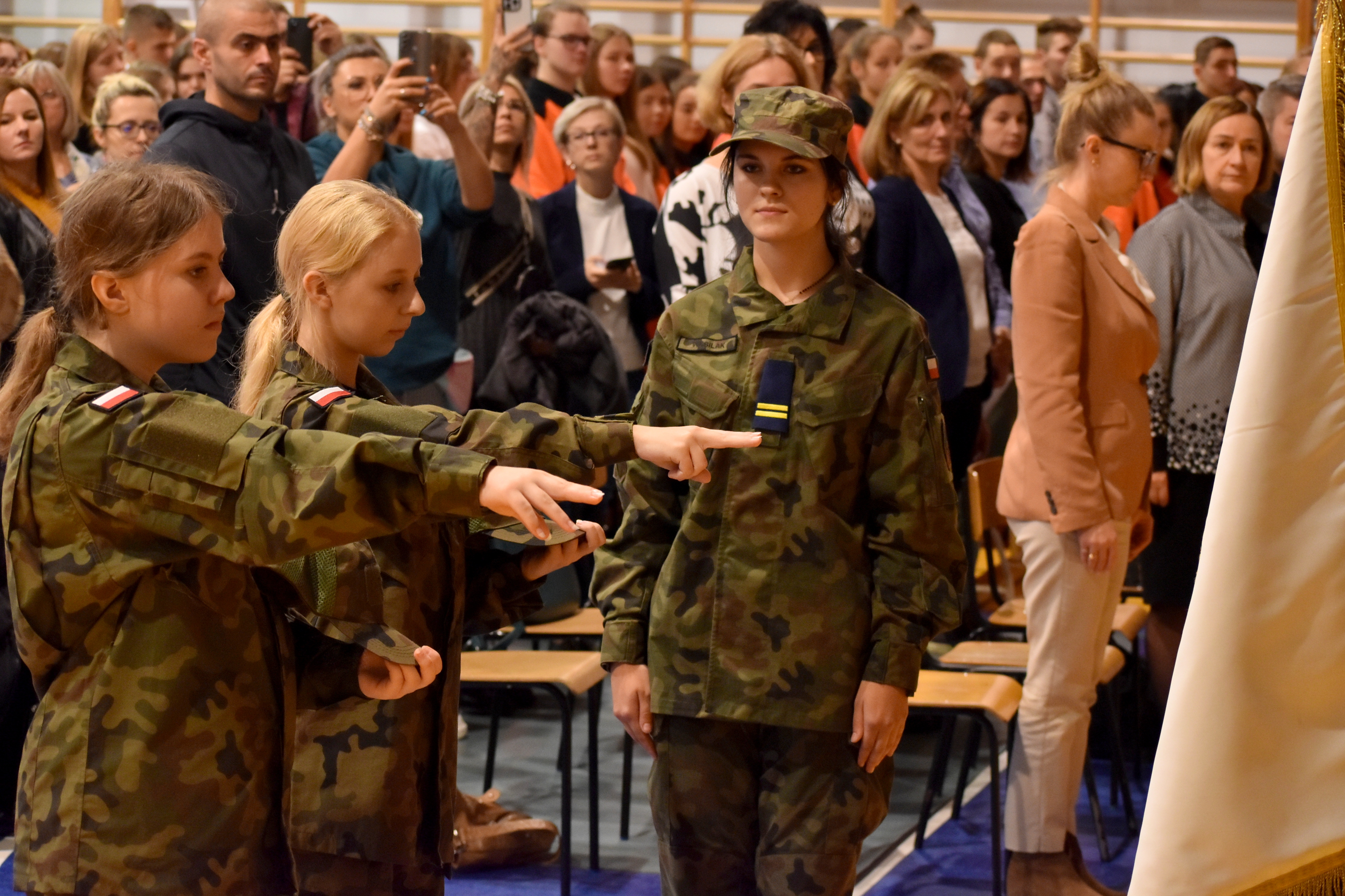 Zaproszeni goście i rodzice, których na uroczystościach powitała dyrektor Dorota Klimczak byli świadkami ślubowania 14 kadetów z klasy I wojskowej.