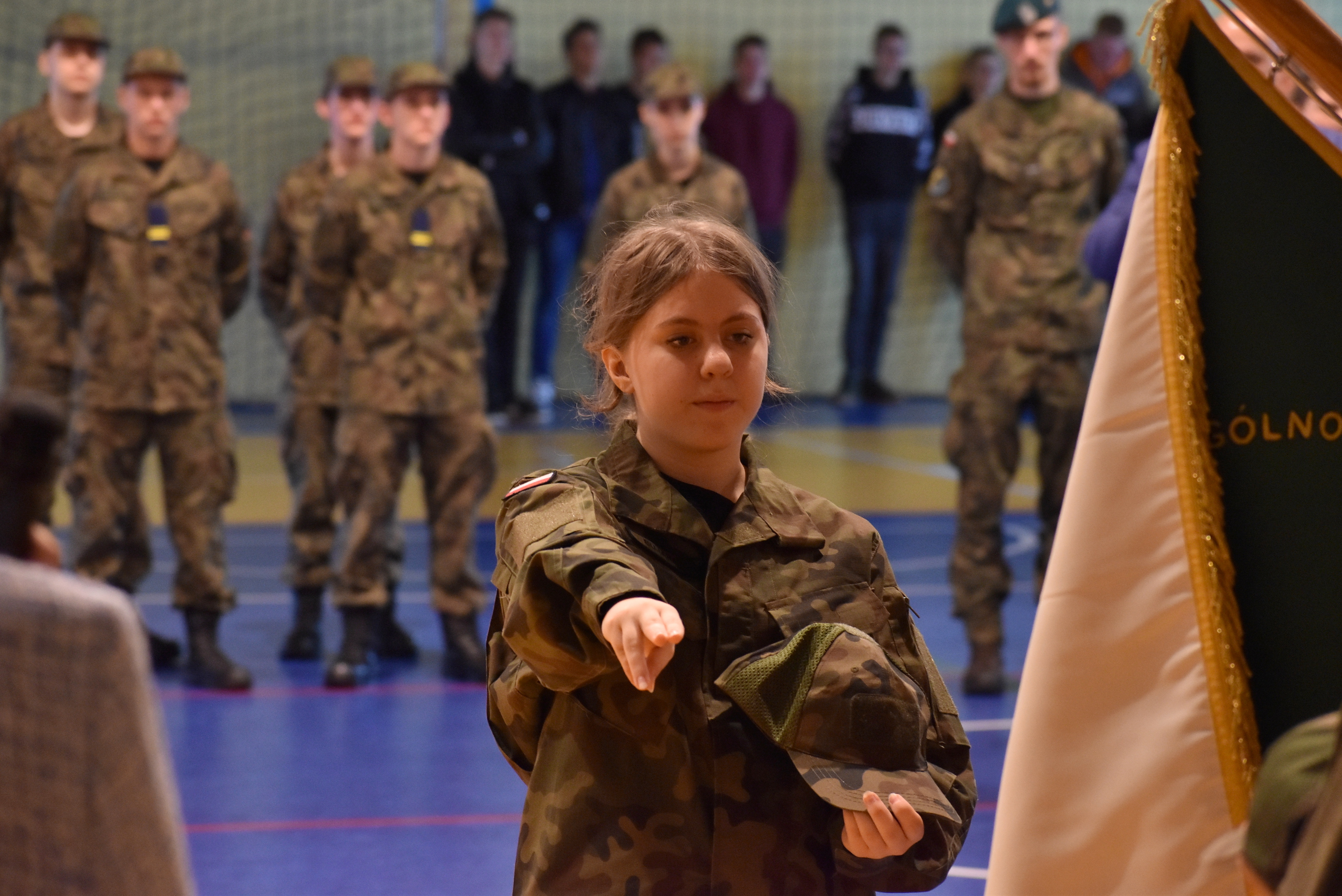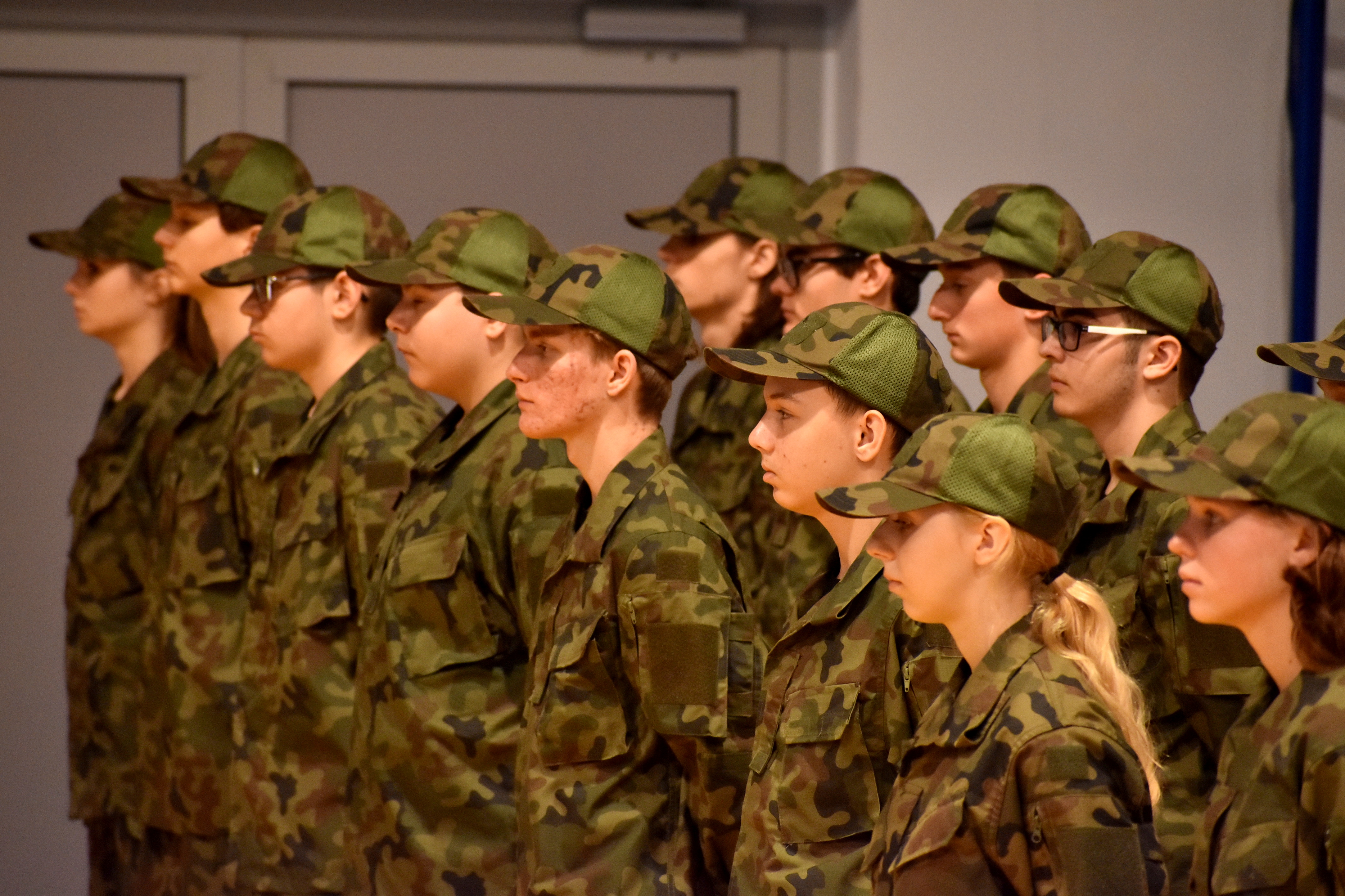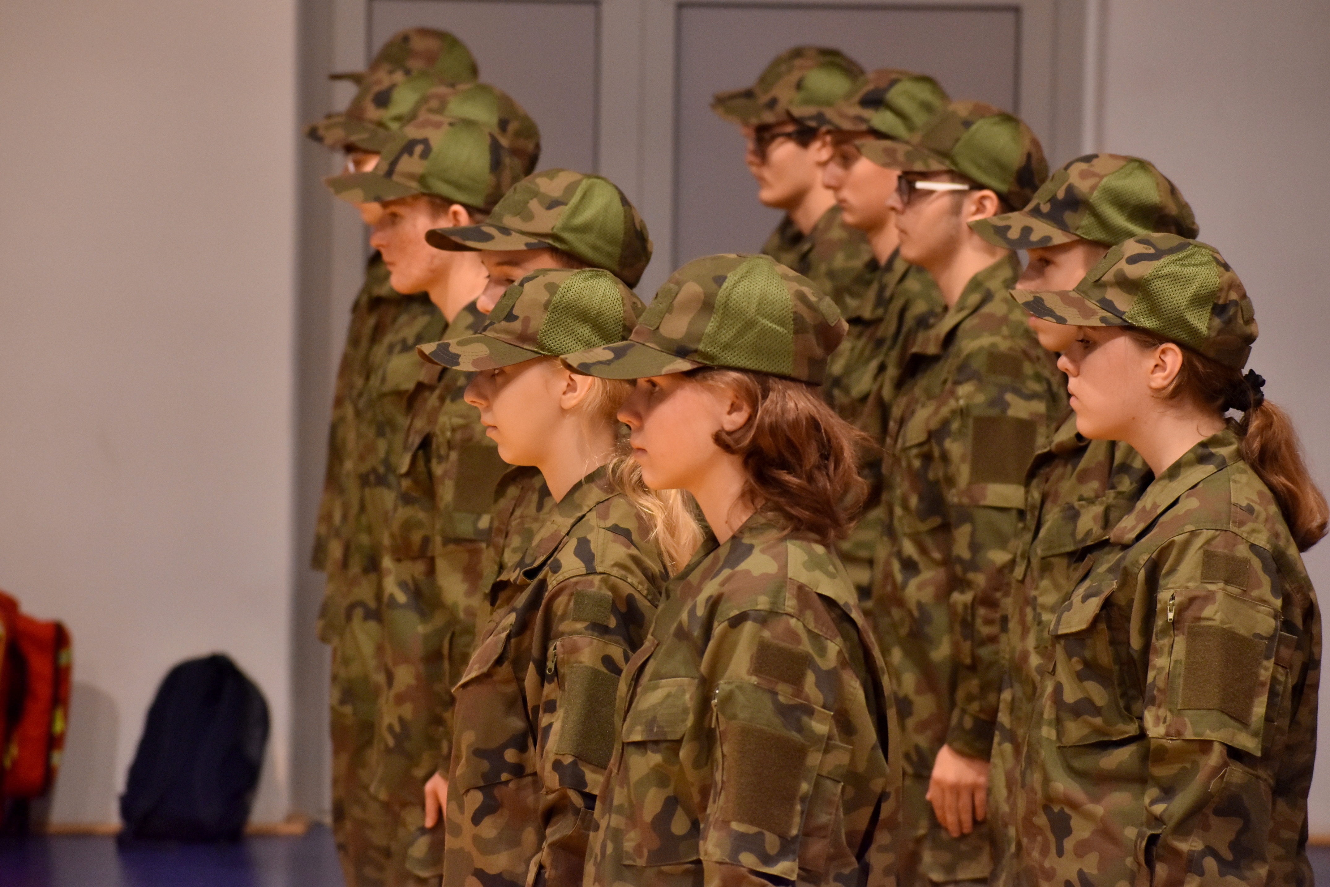 Zaproszeni goście i rodzice, których na uroczystościach powitała dyrektor Dorota Klimczak byli świadkami ślubowania 14 kadetów z klasy I wojskowej.