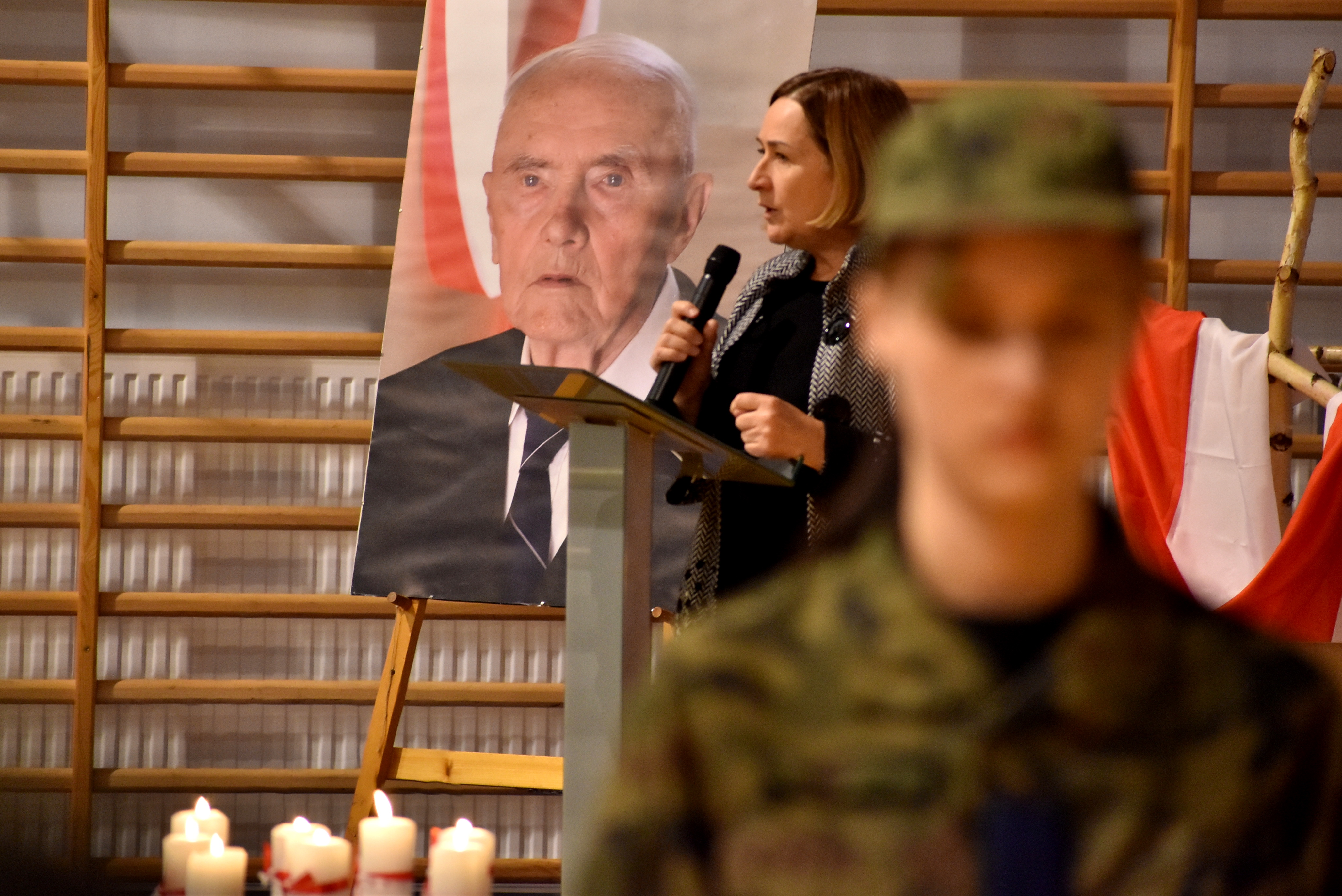 Teresa Jankowska, członkini Zarządu Powiatu w Oświęcimiu gościła na dzisiejszych uroczystościach z okazji 104. rocznicy odzyskania przez Polskę niepodległości w Powiatowym Zespole nr 6 Szkół Zawodowych i Ogólnokształcących w Brzeszczach.