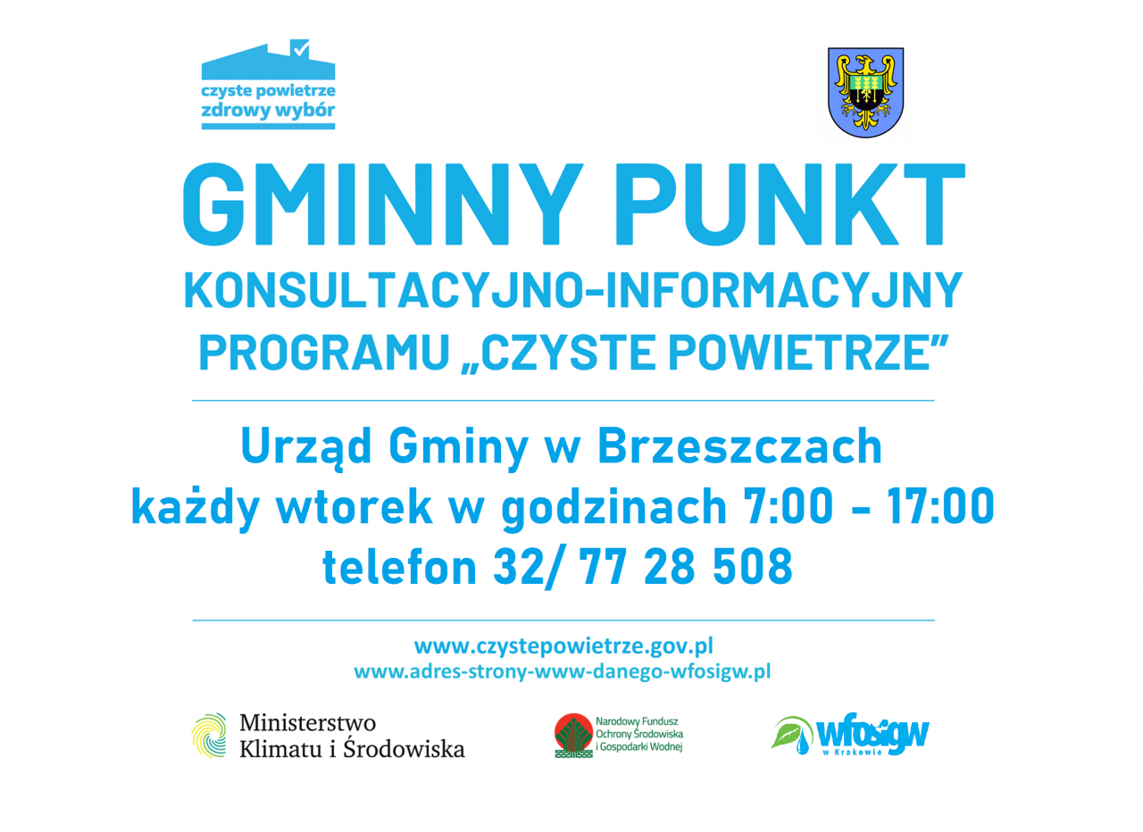 Gmina Brzeszcze podpisała porozumienie z Wojewódzkim Funduszem Ochrony Środowiska i Gospodarki Wodnej w Krakowie  i przystąpiła do obsługi Programu Priorytetowego “Czyste Powietrze”. Mieszkańcy mogą za pośrednictwem Urzędu Gminy złożyć wniosek o dotację z Programu “Czyste Powietrze” oraz otrzymać bezpłatną pomoc w zakresie weryfikacji wniosku pod kątem wymagań programu.