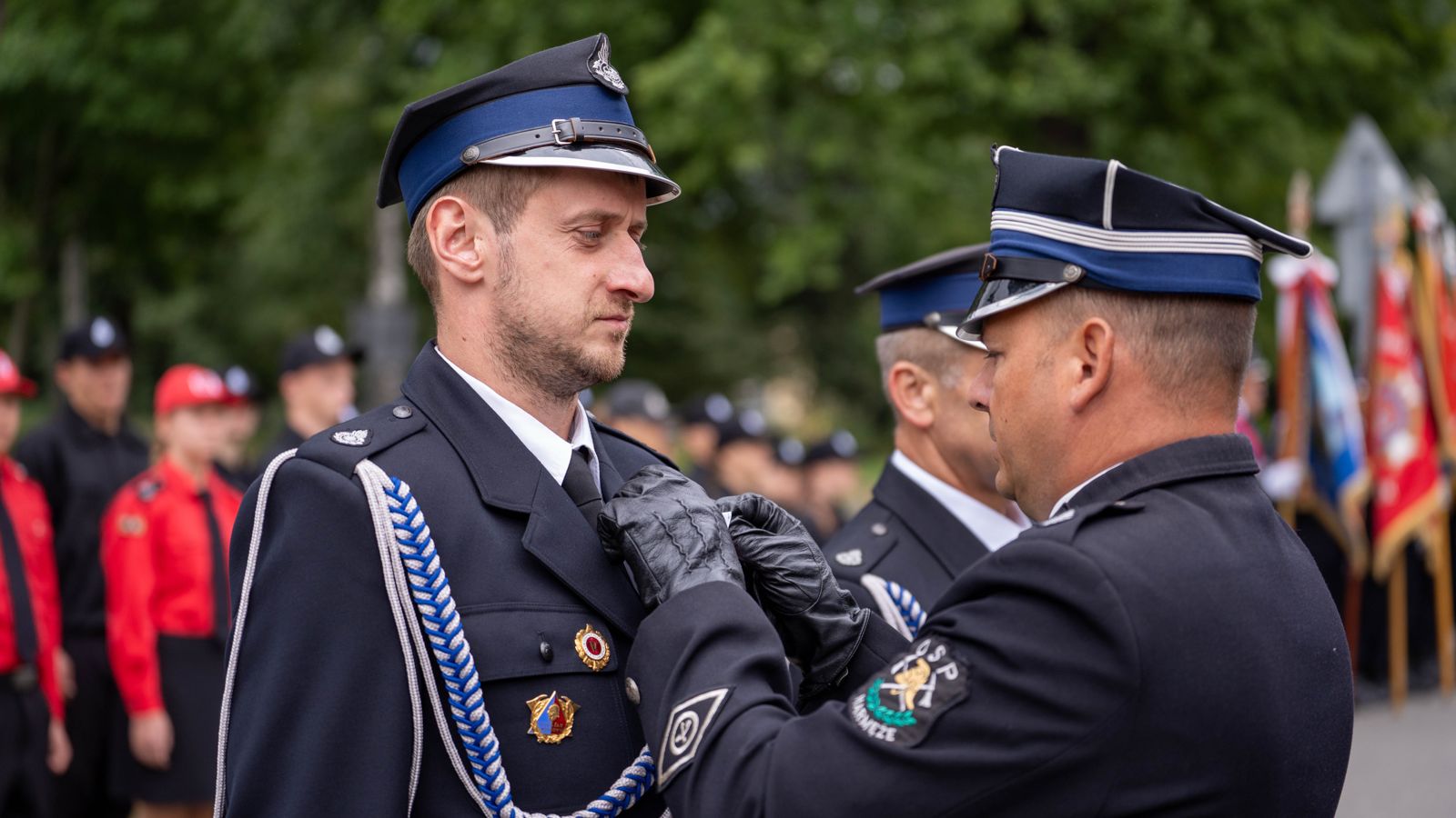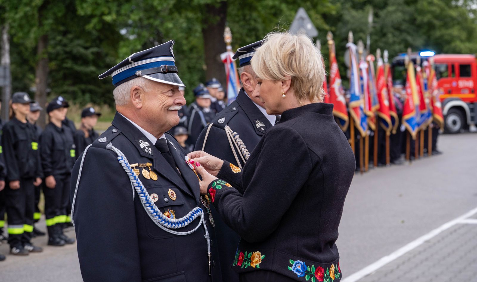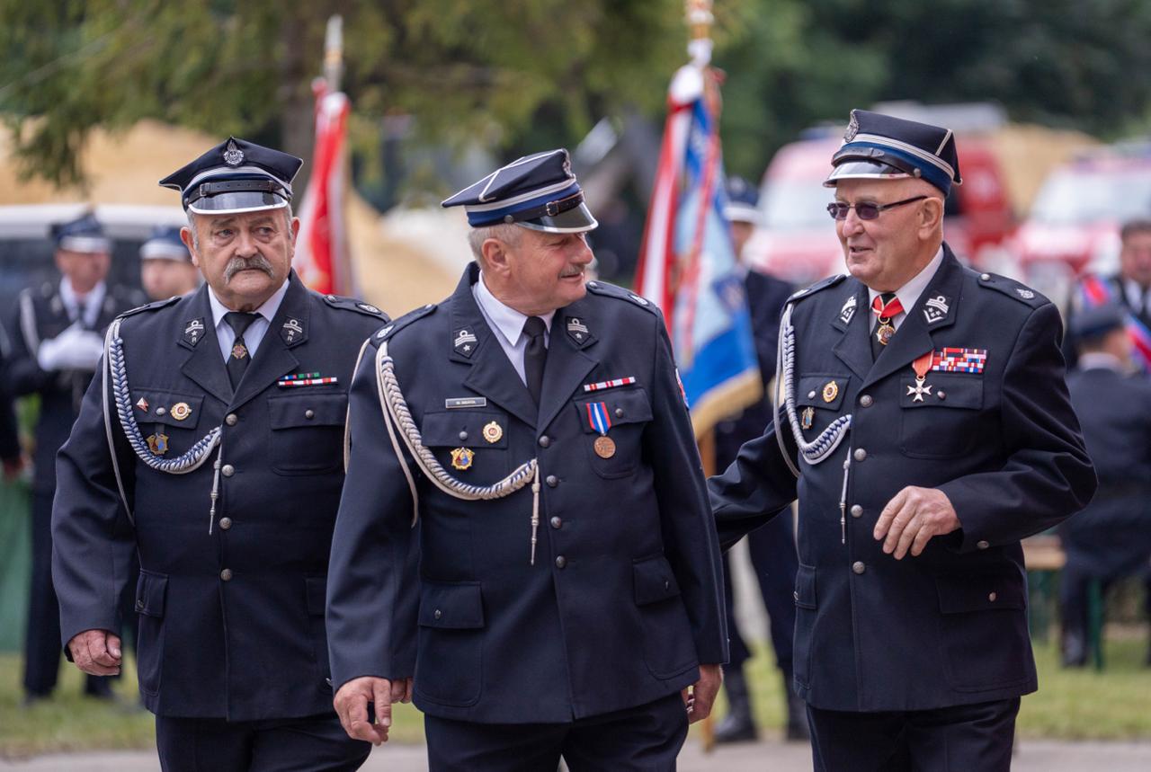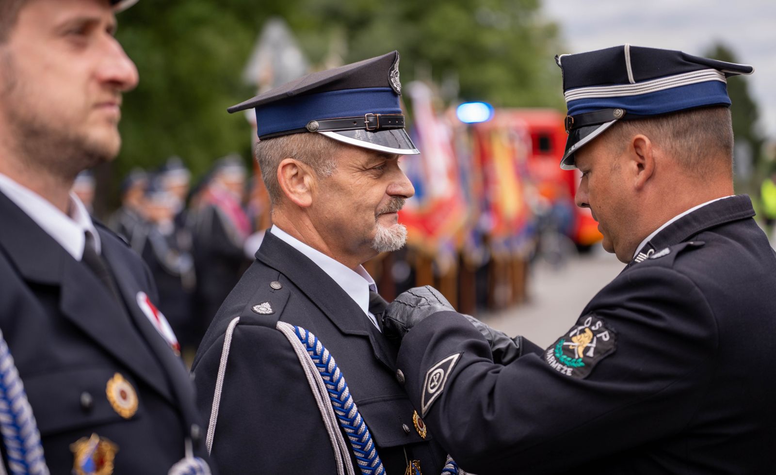 Podczas uroczystości wręczono liczne odznaki i medale, honorując zarówno seniorów, jak i młodszych strażaków.