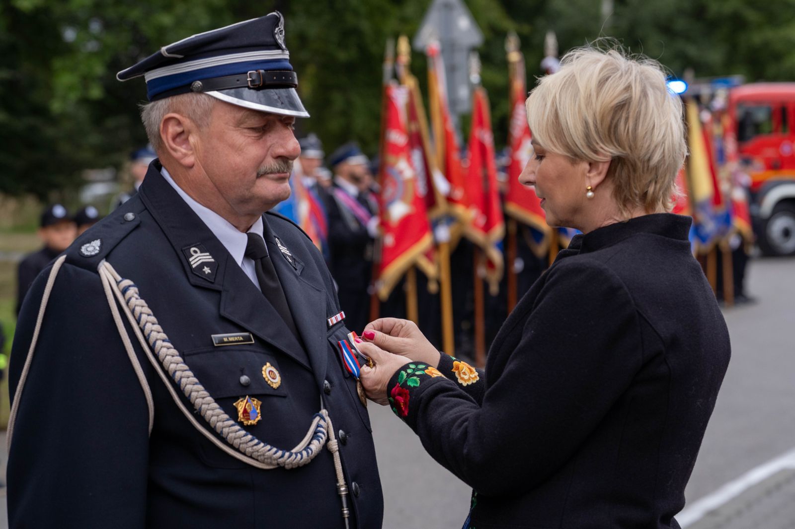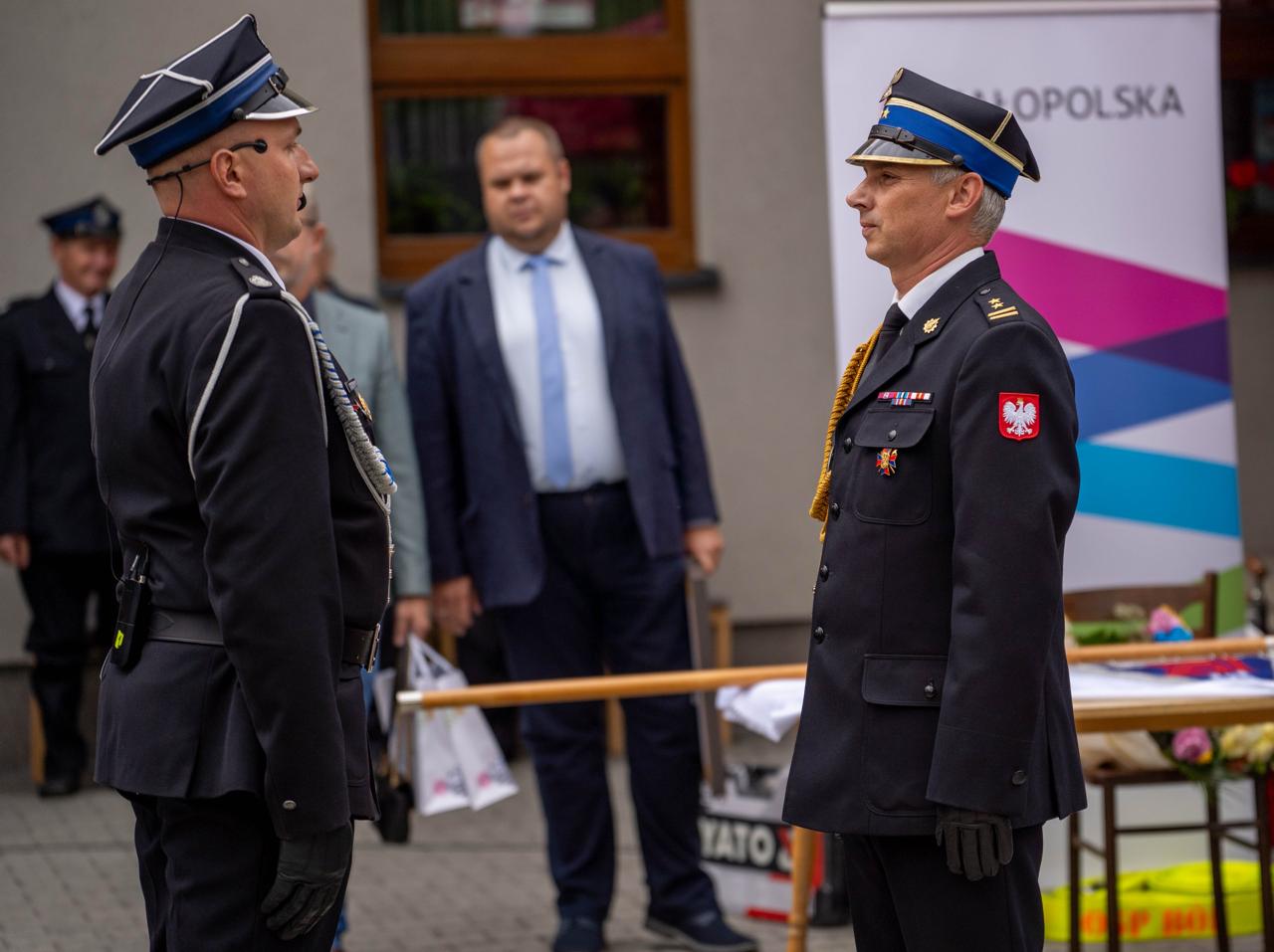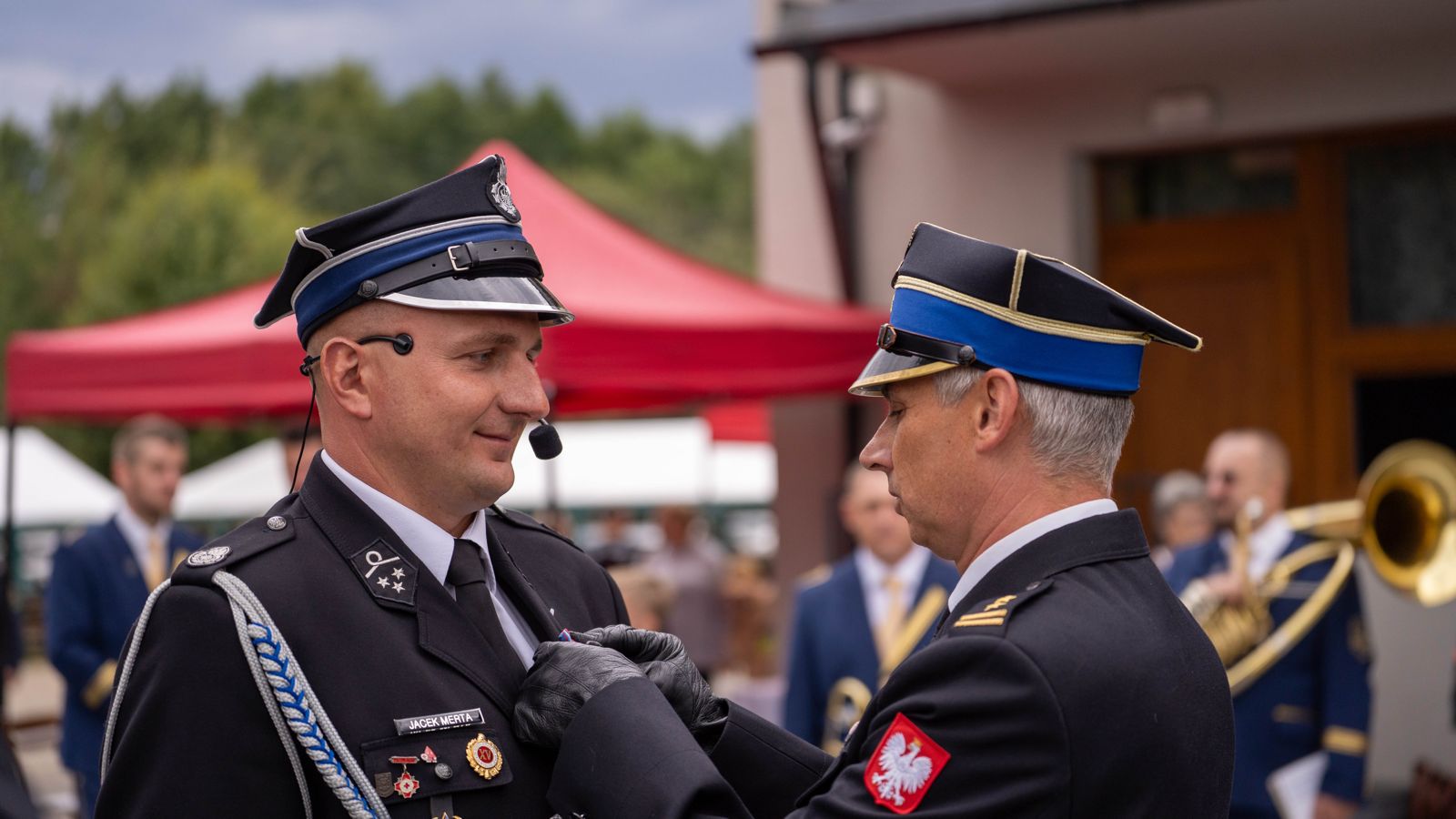 Podczas uroczystości wręczono liczne odznaki i medale, honorując zarówno seniorów, jak i młodszych strażaków.