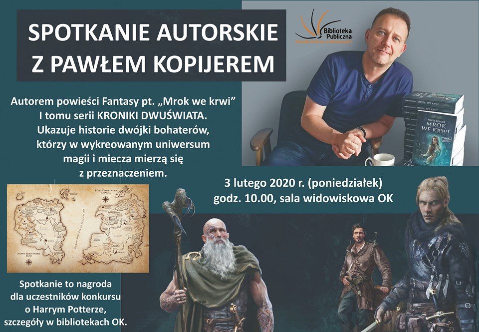 Natomiast na początku lutego uczestnicy konkursu o Harrym Potterze, zostaną nagrodzeni możliwością udziału w spotkaniu z Pawłem Kopijerem – autorem współczesnej literatury fantastycznej w klimacie magii i miecza.
