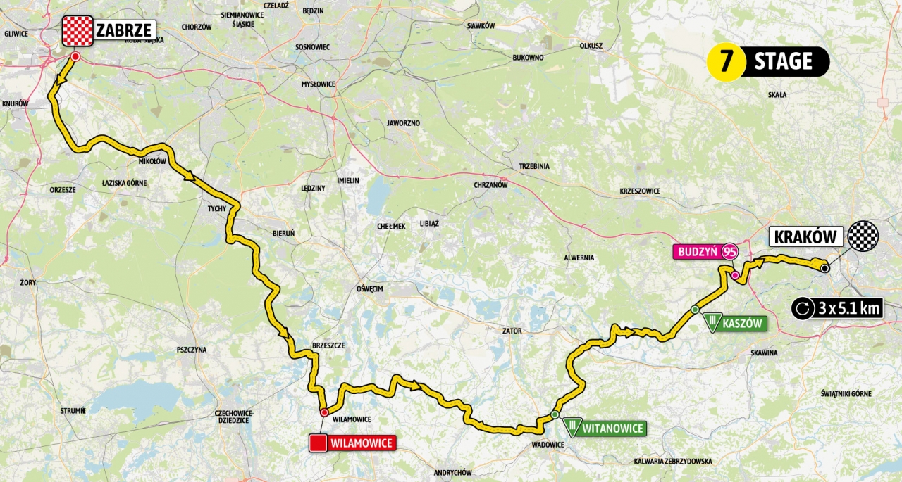 W piątek 4 sierpnia peleton przejedzie prawie 167 kilometrów z Zabrza do Krakowa, gdzie już tradycyjnie zakończy się cały wyścig. Meta zostanie usytuowana przy krakowskich Błoniach, wcześniej kolarze pokonają trzy rundy ulicami miasta. Zanim dojadą do Krakowa, powalczą o Premię Lotną LOTTO w Wilamowicach, Premie Górskie PZU III kat. w Witanowicach i Kaszowie oraz Premię Specjalną 95 lat Tour de Pologne SOUDAL w Budzyniu. Na trasie przejazdu znajduje się także Gmina Brzeszcze.