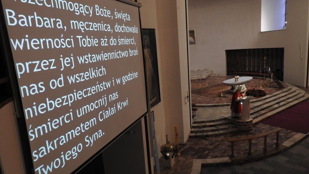 W homilii biskup Piotr Greger przypomniał, że w ikonografii św. Barbara przedstawiana jest m.in. z kielichem i monstrancją. – To inspiracja do życia Eucharystią na co dzień. Świadectwo jej życia, przypieczętowane męczeńską śmiercią, stanowi wyraz gotowości i dyspozycyjności, abyśmy w każdej chwili życia, a zwłaszcza w momencie śmierci, zostali umocnieni Ciałem i Krwią Jezusa Chrystusa – mówił Biskup.