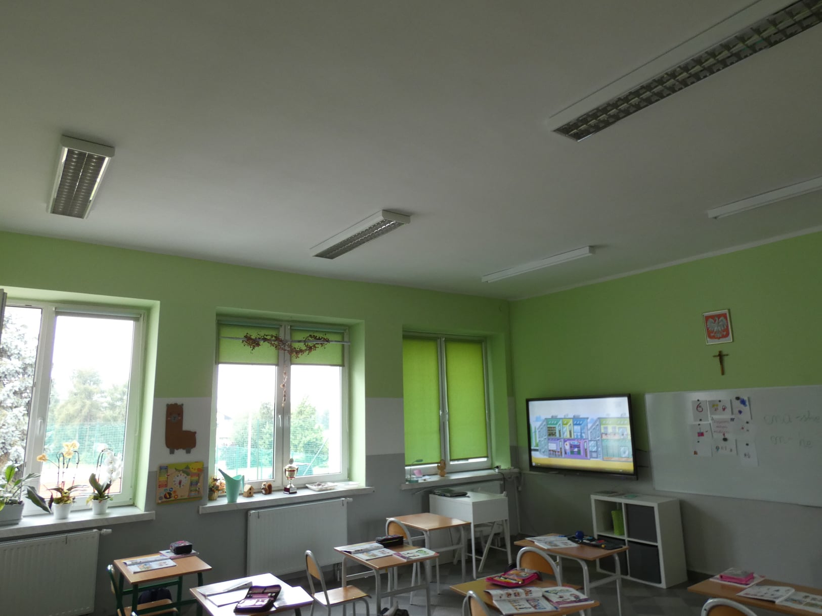 Wymieniona została instalacja grzewcza w budynku – w salach i na korytarzach zamontowano nowe grzejniki. Ponadto wymienione zostały oprawy oświetleniowe, odmalowano korytarze i sale lekcyjne. Nowy ekologiczny kocioł gazowy jest gotowy do uruchomienia!