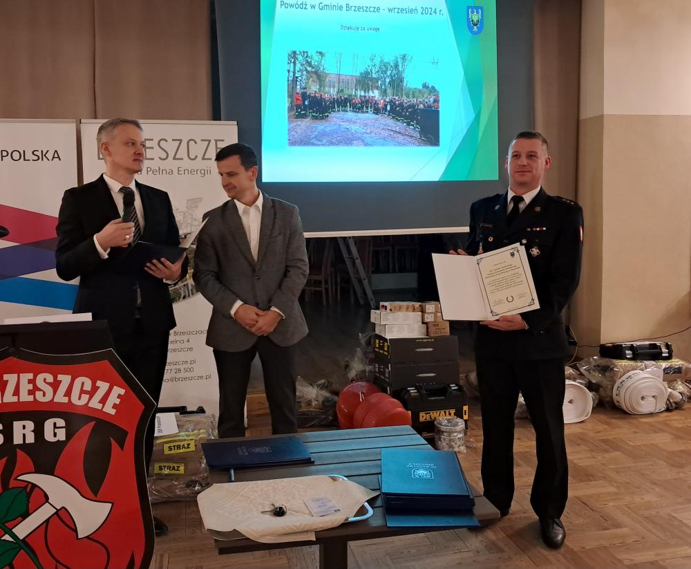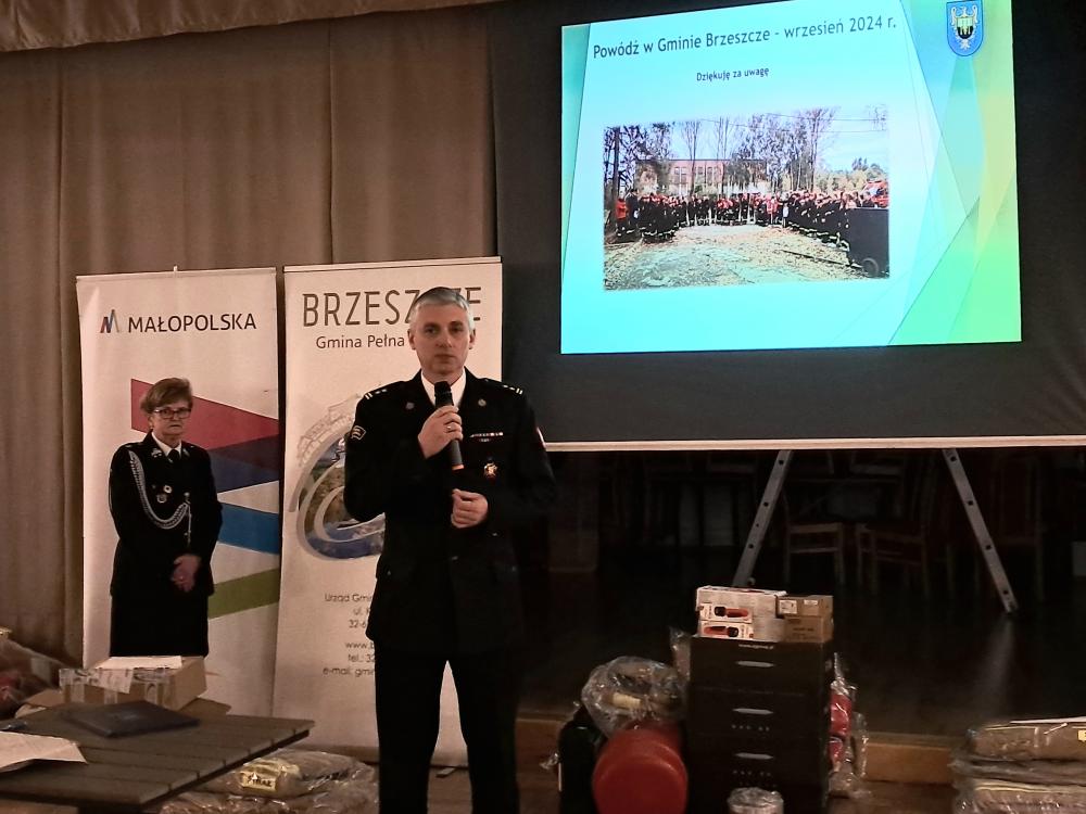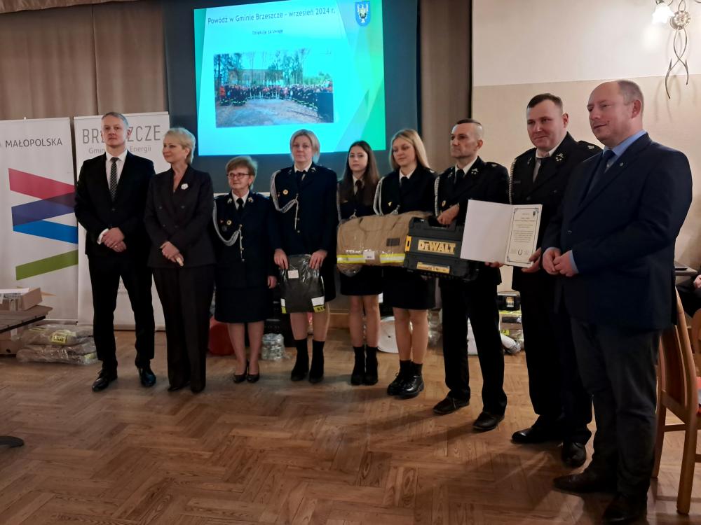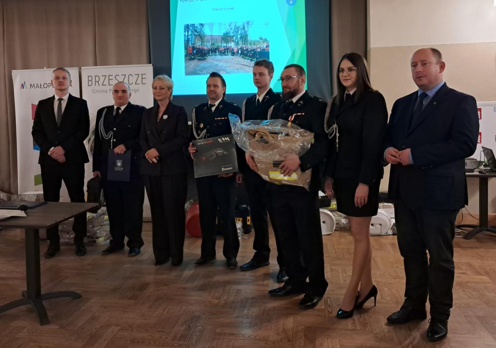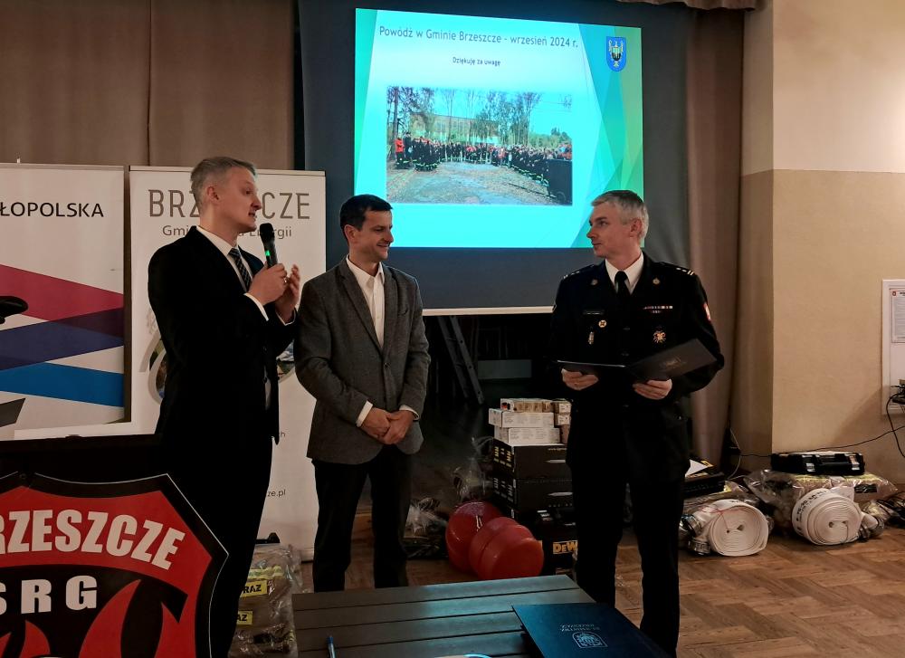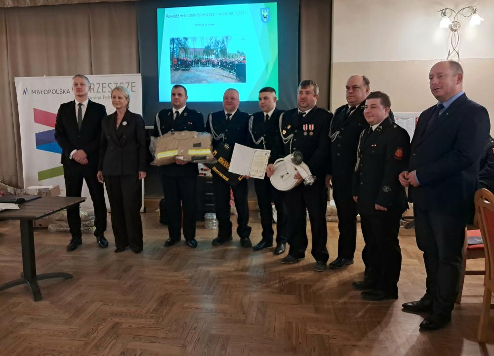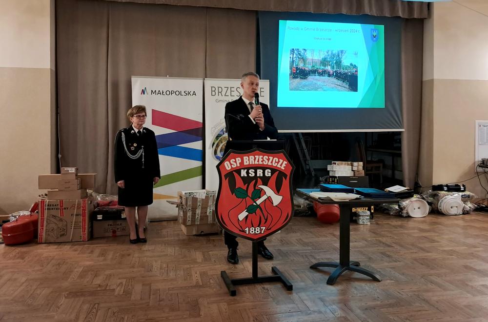 W piątek, 10 stycznia 2025 roku, w remizie OSP Brzeszcze odbyło się uroczyste przekazanie jednostkom Ochotniczych Straży Pożarnych z terenu Gminy Brzeszcze nowego wyposażenia i odzieży. Sprzęt został zakupiony w ramach odtworzenia wyposażenia uszkodzonego i utraconego podczas powodzi, która nawiedziła Gminę we wrześniu 2024 roku. Środki finansowe na ten cel zostały pozyskane z rezerwy celowej budżetu państwa oraz z budżetu Województwa Małopolskiego.