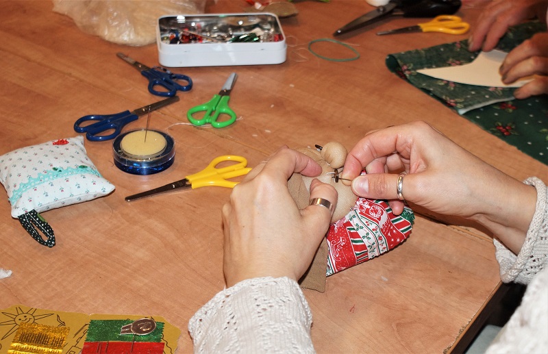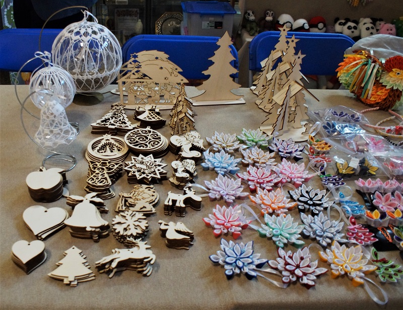 Podczas warsztatów rękodzielniczych powstały wykonane w różnych technikach ozdoby choinkowe, kwiaty papierowe, biżuteria, makramy i inne cieszące oko przedmioty, które każdy uczestnik zabierał ze sobą do domu.
