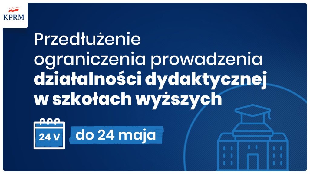 Zgodnie z podpisanym dziś rozporządzeniem zawieszenie działalności jednostek oświatowych (szkół, uczelni, przedszkoli i żłobków) potrwa do 24 maja. Nauka w dalszym ciągu odbywać się będzie na odległość.