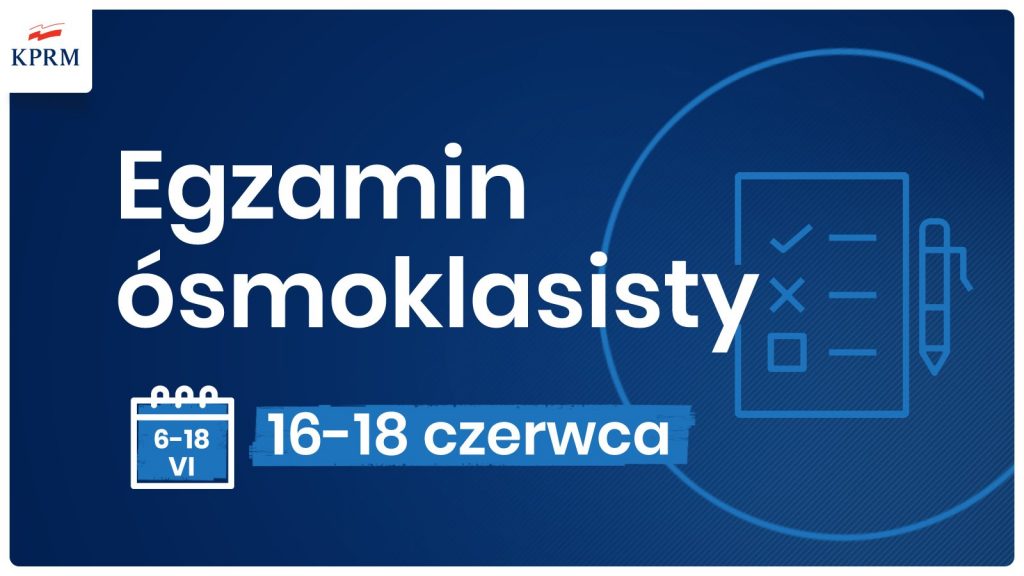- Egzamin ósmoklasisty będzie przeprowadzony od 16 do 18 czerwca br.