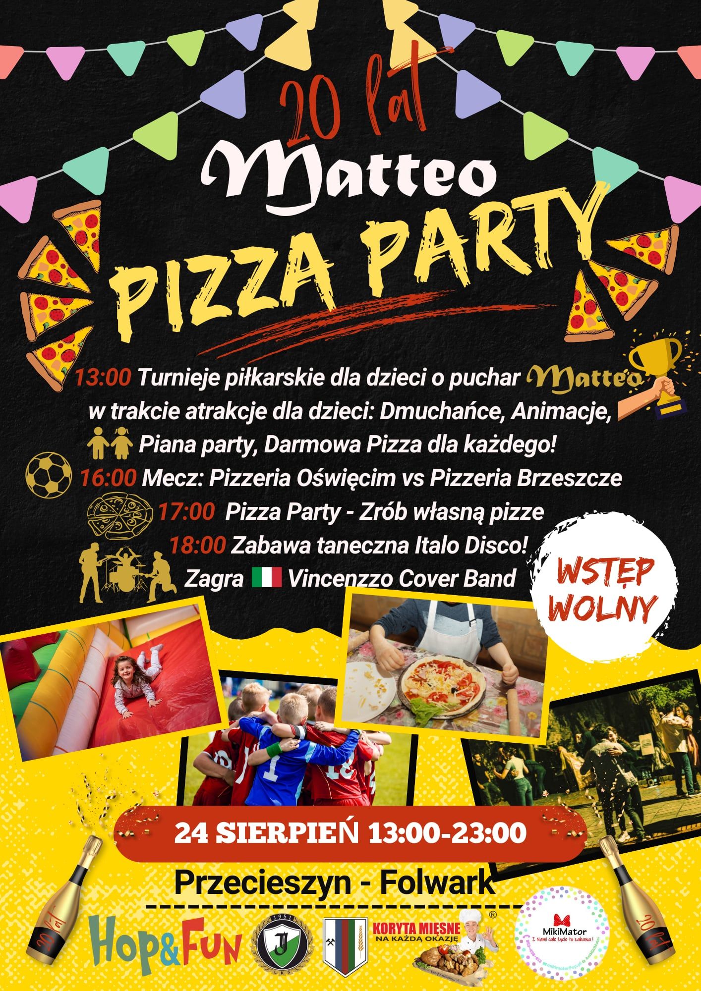 W najbliższą niedzielę, w Folwarku w Przecieszynie odbędzie się Wielki Piknik Rodzinny z okazji 20-lecia Pizzerii Matteo. Będzie to dzień pełen smaku, zabawy i piłkarskich emocji, a wstęp jest całkowicie darmowy!