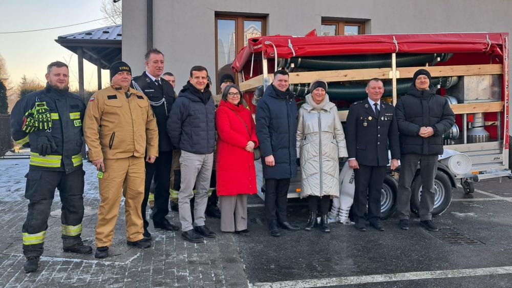 W piątek, 9 stycznia 2026 roku, w remizie Ochotniczej Straży Pożarnej w Brzeszczach odbyła się uroczystość przekazania nowego wyposażenia, sprzętu specjalistycznego oraz odzieży ochronnej i bojowej jednostkom OSP działającym na terenie Gminy Brzeszcze. W wydarzeniu uczestniczyli Marszałek Województwa Małopolskiego Łukasz Smółka oraz Członek Zarządu Województwa Iwona Gibas.