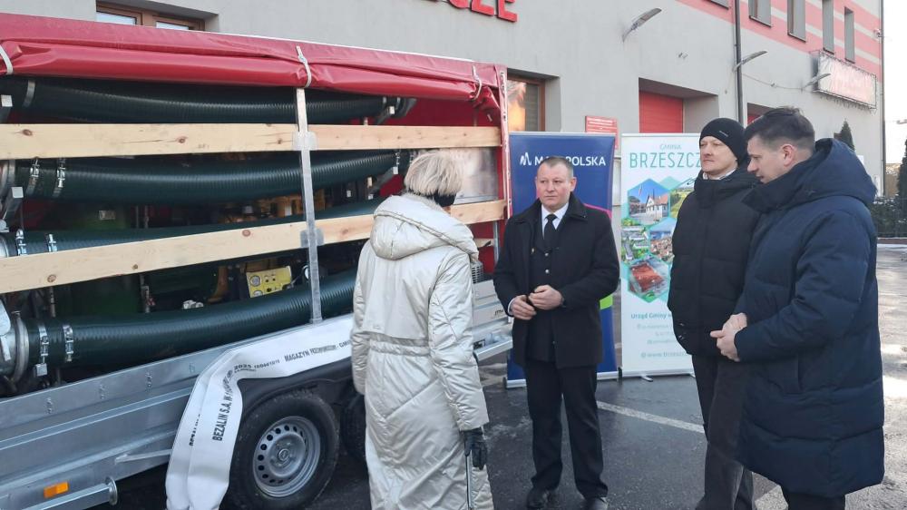 W odpowiedzi na wniosek Burmistrza Brzeszcz Radosława Szota, władze Województwa Małopolskiego udzieliły w 2025 roku dotacji w wysokości 350 tysięcy złotych. Środki te pozwoliły na zakup nowoczesnego agregatu pompowego wraz z niezbędnym osprzętem oraz przyczepą transportową, który zasili gminny magazyn przeciwpowodziowy.