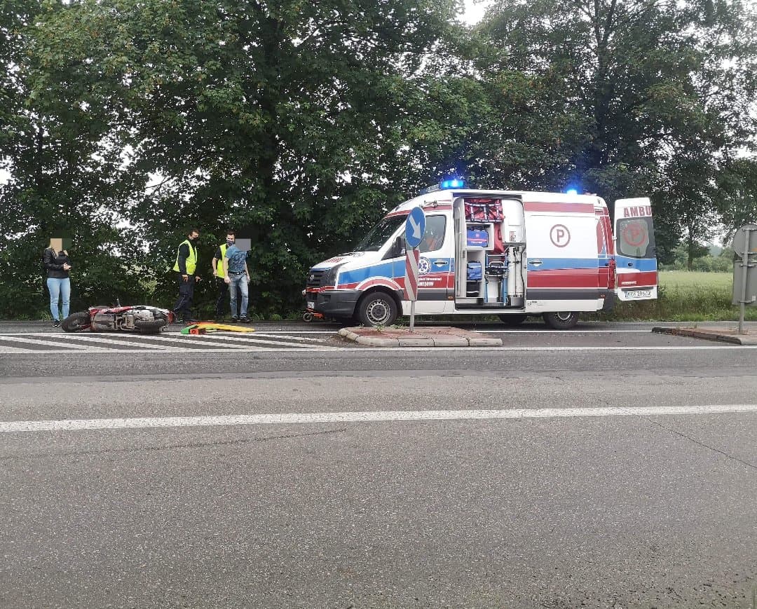 Na miejscu działania prowadziła Policja oraz Zespół Ratownictwa Medycznego, który zabrał kierowcę skutera do Szpitala.