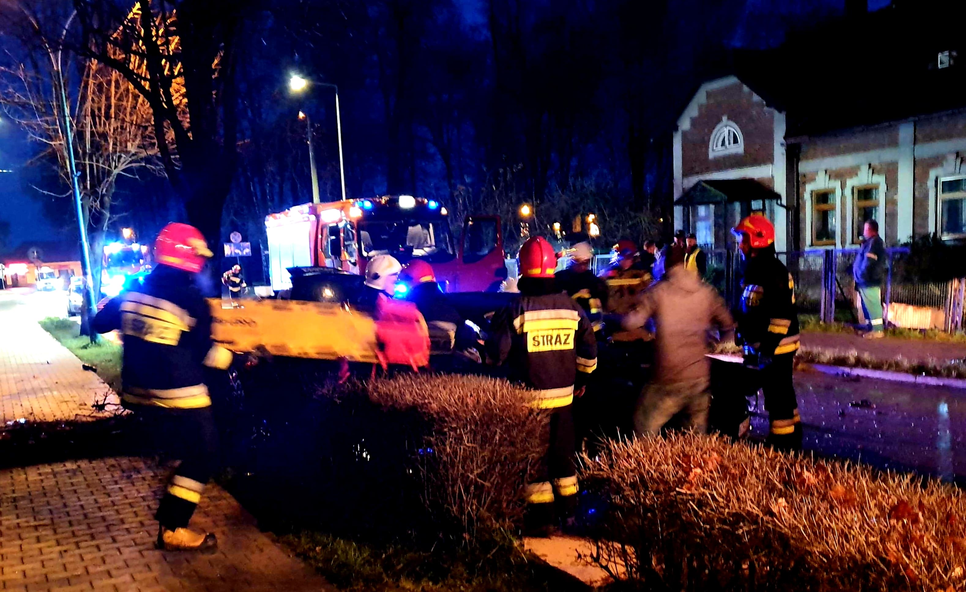 Kierującego oraz jego 21 – letnią pasażerkę strażacy wydostali z wnętrza pojazdu po rozcięciu karoserii przy użyciu specjalistycznego sprzętu. Oboje zostali przewiezieni przez Pogotowie Ratunkowe na badania do szpitala.