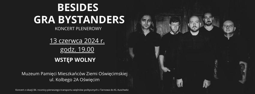 Muzeum Pamięci Mieszkańców Ziemi Oświęcimskiej zaprasza na niezwykłe muzyczne wydarzenie. 13 czerwca o godzinie 19:00, przy obiekcie MPMZO odbędzie się wyjątkowy plenerowy koncert zespołu Besides. Brzeszczański skład w towarzystwie kwartetu smyczkowego zagra kompozycje ze swojego ostatniego albumu Bystanders.