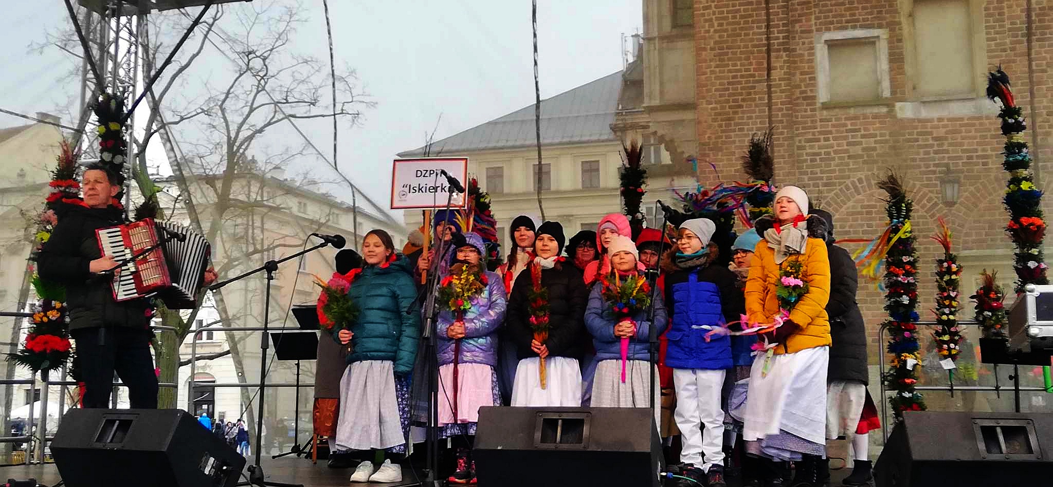 Jawiszowianki, Dziecięcy Zespół Pieśni i Tańca Iskierki, Muzy Iskierki oraz Zespół Śpiewaczy Iskierkowa Familia wzięły udział w Korowodzie Palmowym – corocznej imprezie organizowanej na Rynku w Krakowie, w ramach Jarmarku Wielkanocnego.