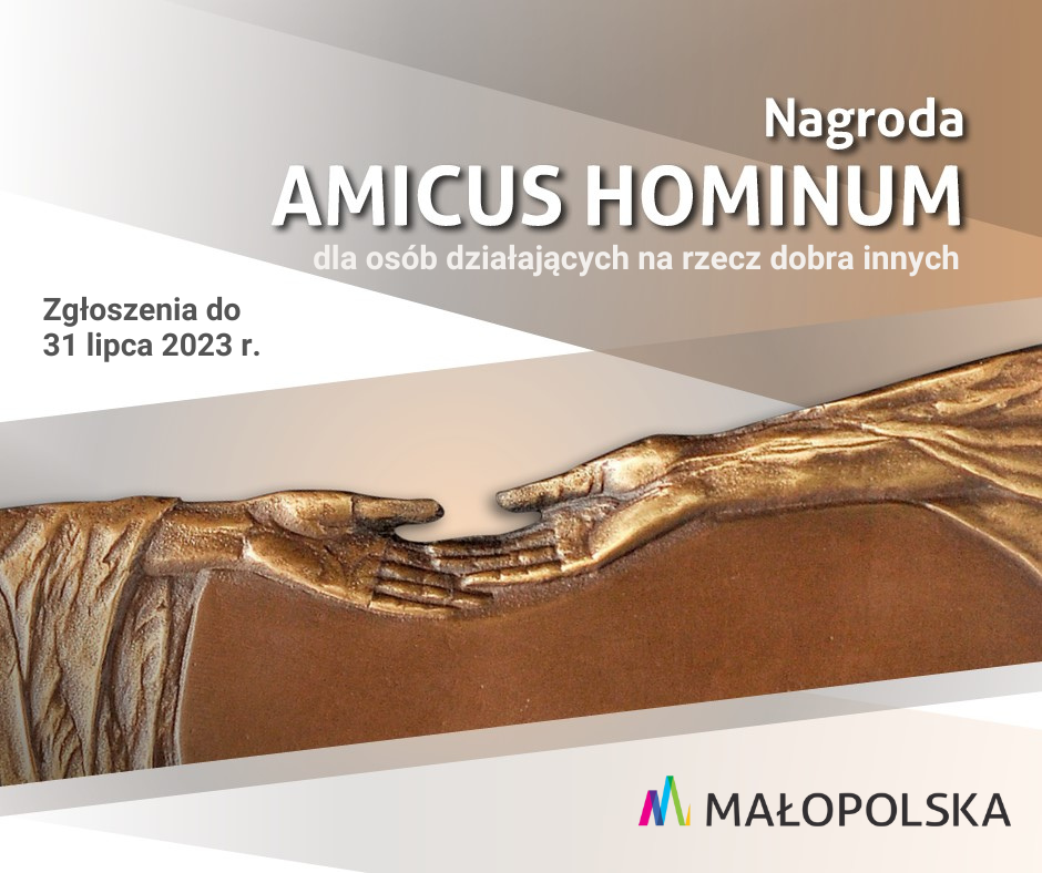 Samorząd Województwa Małopolskiego zachęca do zgłaszania kandydatur do dwóch konkursów – o Nagrodę Samorządu Województwa Małopolskiego dla Osób Działających na Rzecz Dobra Innych AMICUS HOMINUMa także o Nagrodę Marszałka Województwa Małopolskiego dla najlepszych organizacji pozarządowych KRYSZTAŁY SOLITermin nadsyłania formularzy do obu nagród upływa 31 lipca br.
